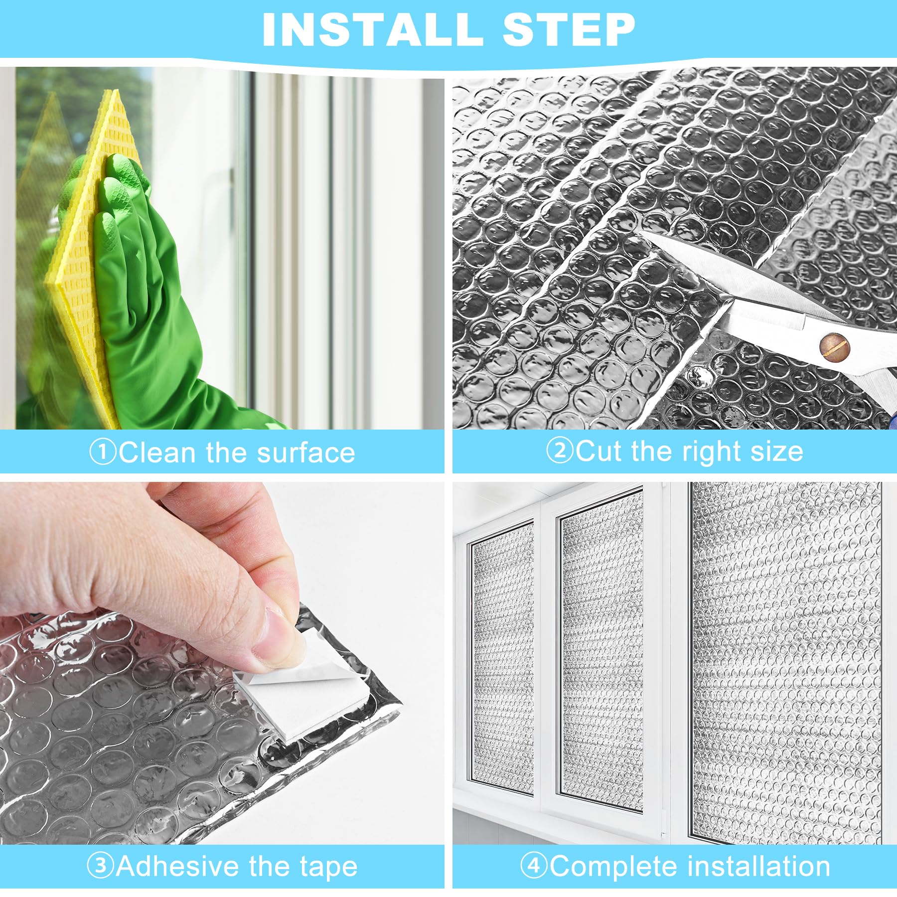 - 【High Quality】Reflective insulation roll is made of premium aluminum foil material, lightweight and odorless. Surface is aluminized film, the middle layer is polyethylene bubble. Bubble insulation films is not easy to break or deform, can be used for a long time. Tips: Please measure size of installation to choose right size.Comes with 60 Tapes for easy installation