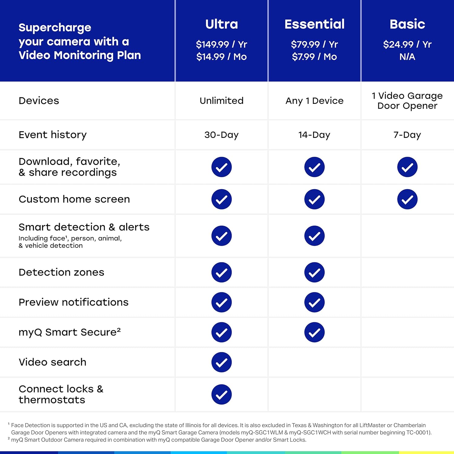 - Live events and motion alerts included: Get up to 30 days of video storage, package and person alerts, and more with a myQ Video Monitoring subscription