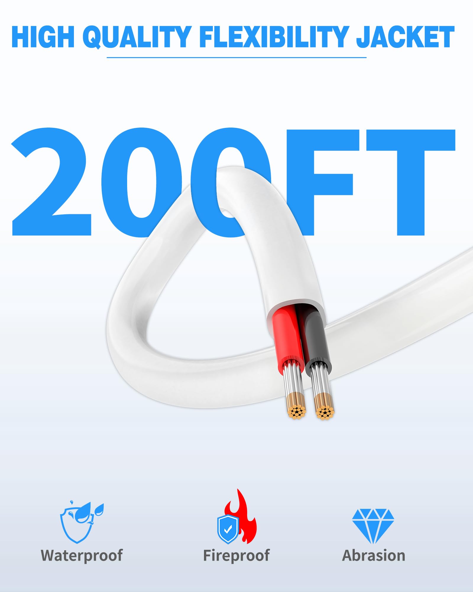 NAOVEO 16 Gauge Wire 2 Conductor Electrical Wire, 16 AWG Stranded PVC Tinned Copper Cable, Flexible/Low Voltage Automotive Wiring for LED Lamps, Marine, Speaker, Appliances (200FT)