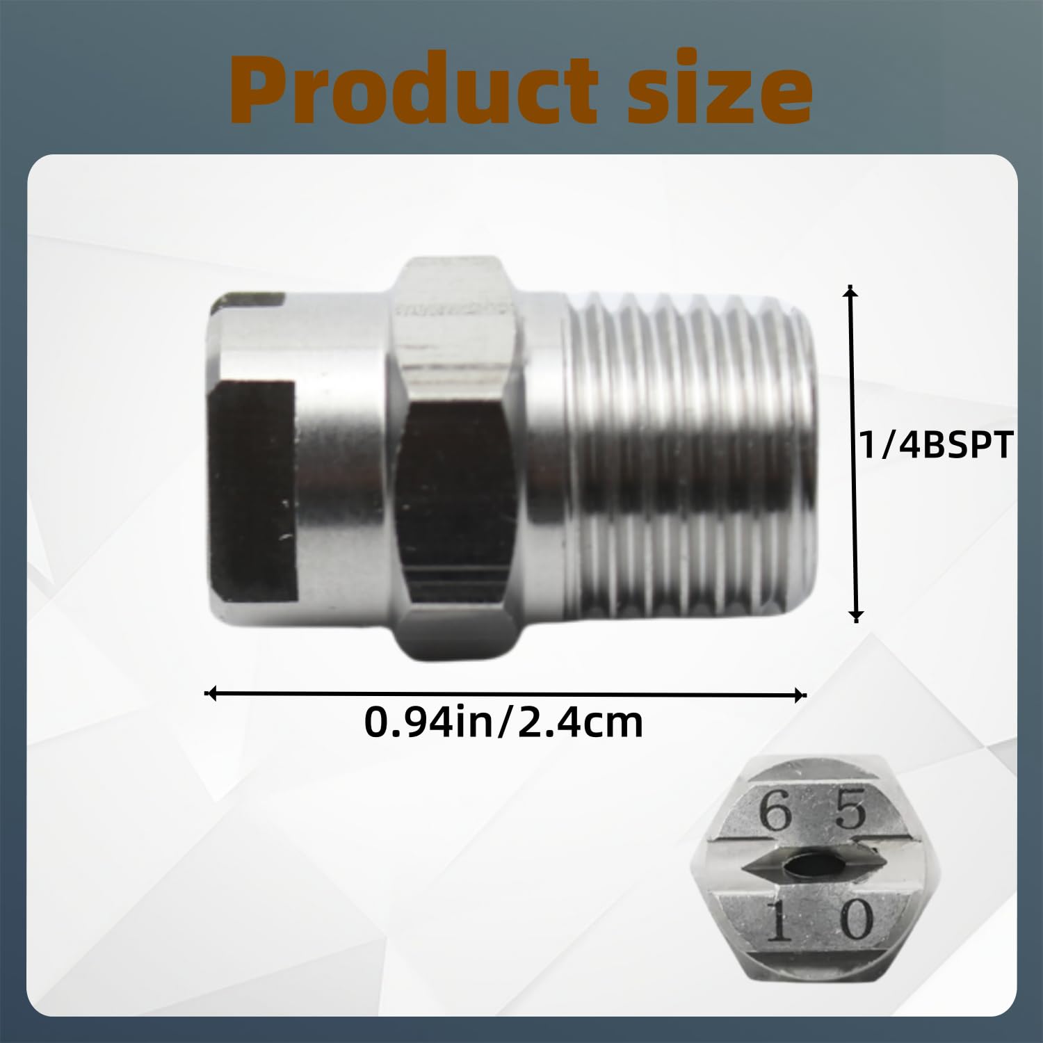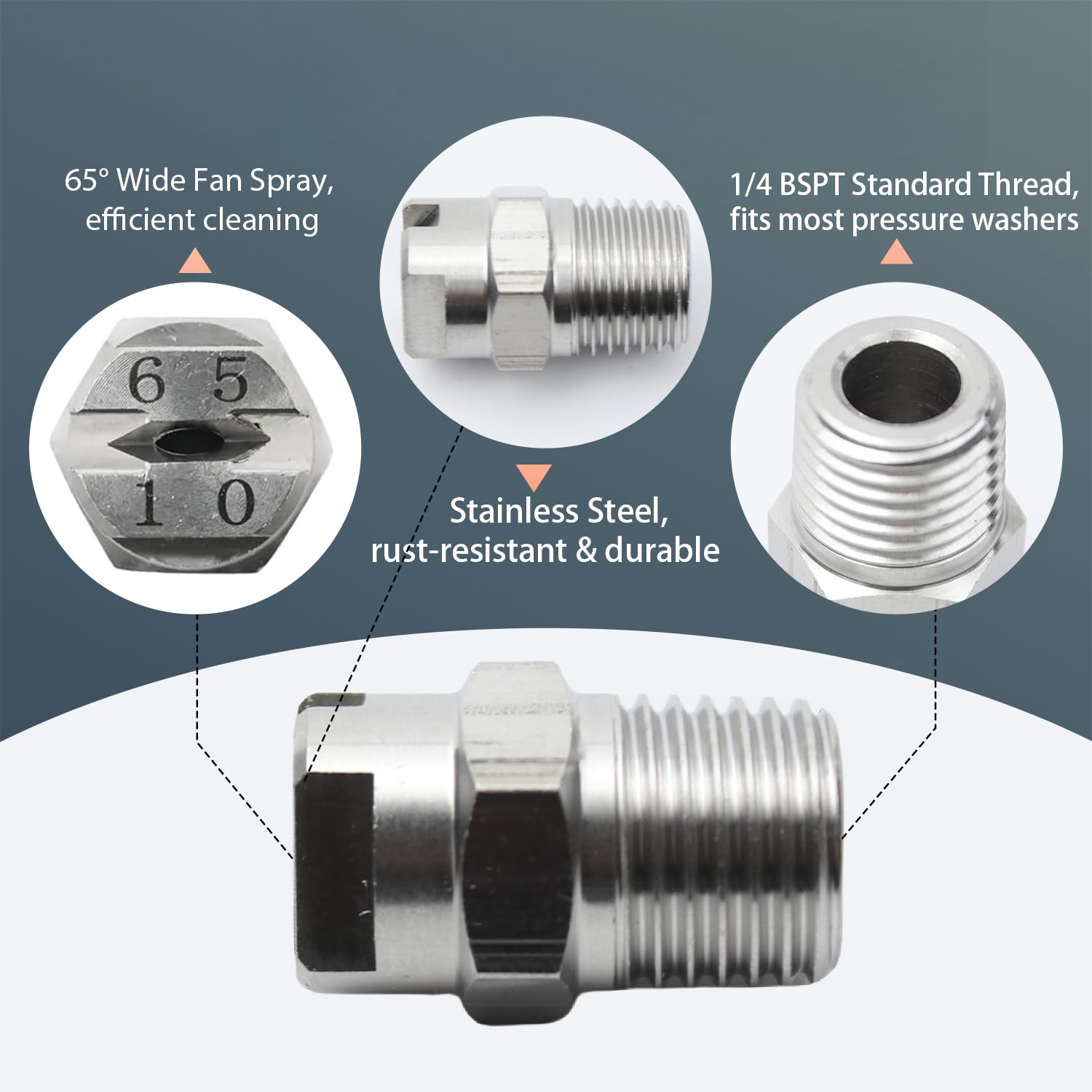 Narcilors 4 Pcs High Pressure Spray Fan Washer Soap Nozzle Tip Stainless Steel 1/4 BSPT 65 Degree Fan 10.0 Oriface Diameter Pressure Washer Parts