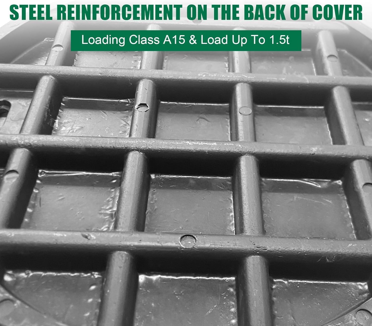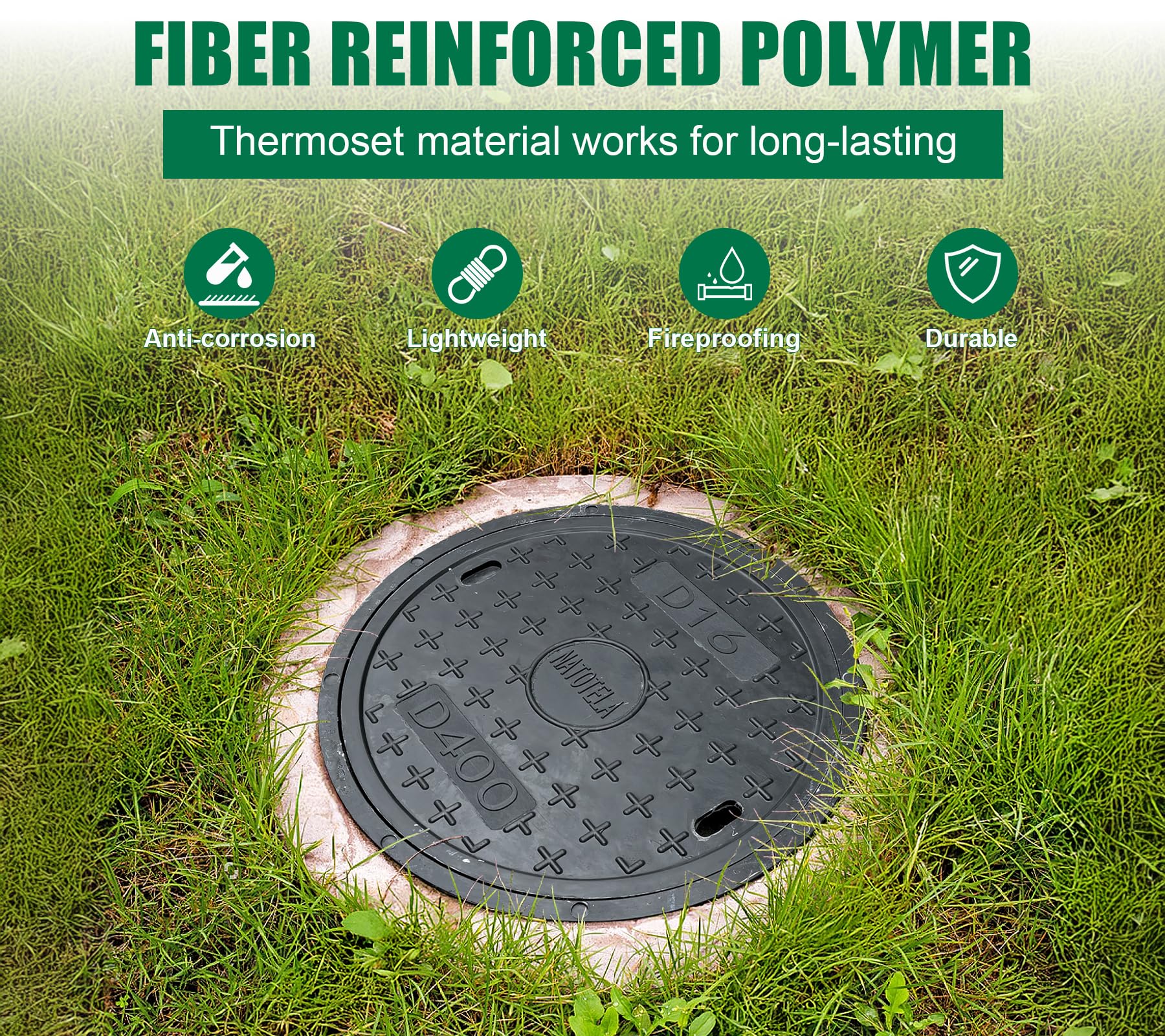 - 【Upgraded Non-breakable Fiberglass】 This thermoset composite plastic material is widely used in building materials. Our reinforced steel manhole covers has anti-corrosion, lightweight and sturdy properties that can work for many years