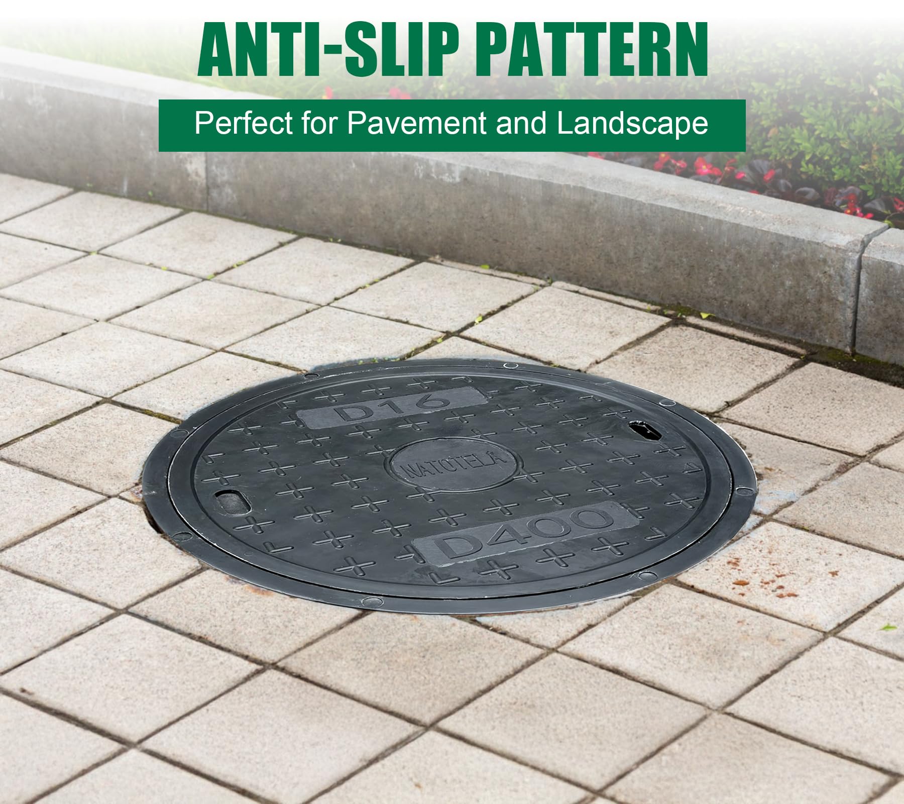 - 【Size recommendations】The manhole frame size is 18.5in, the solid cover size is 16in, the hole clear opening size need to be 14in or less, please ensure that the manhole cover'size match the requirements of the installation
