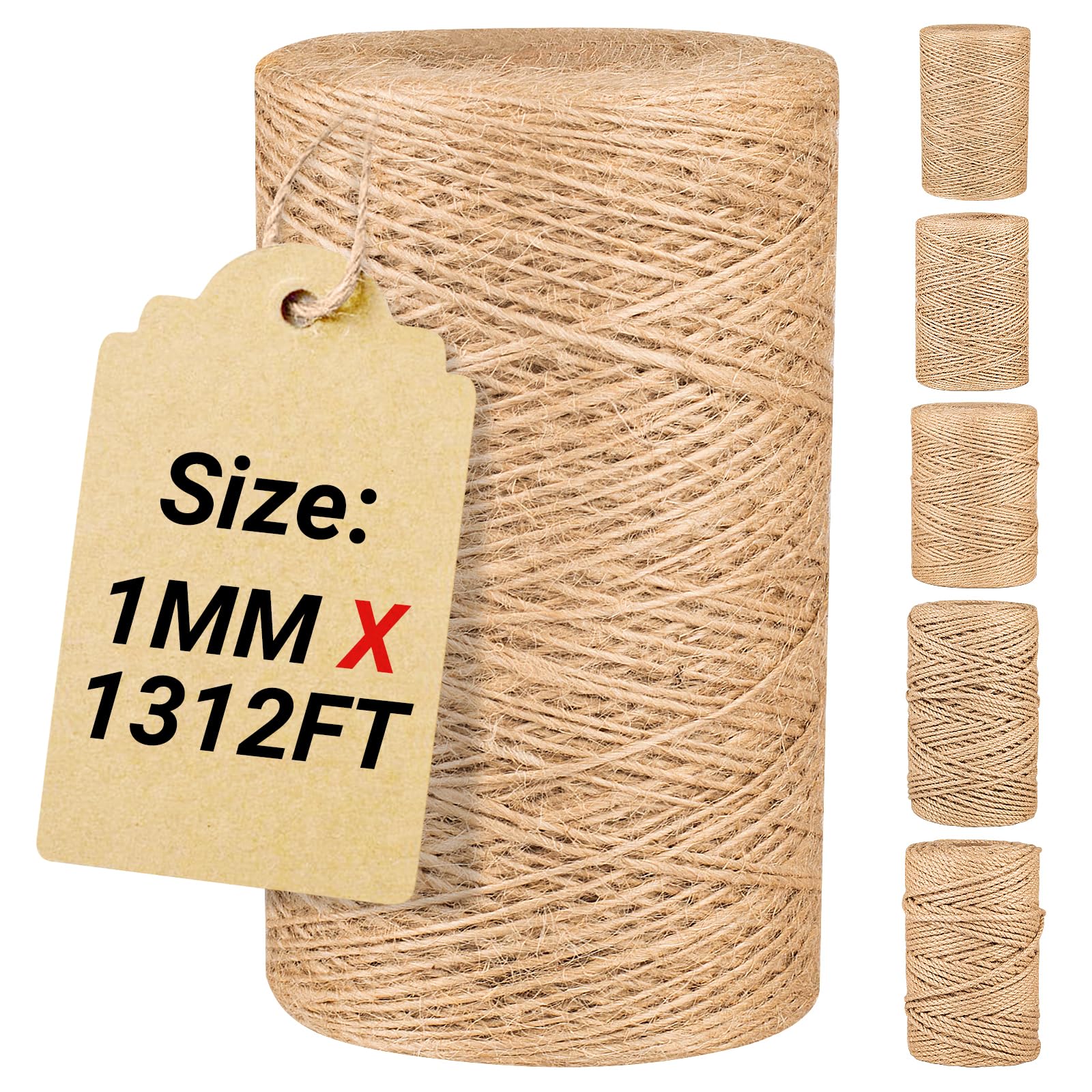 Natural Jute Twine String,Bulk Jute Rope Cord Twine for Crafting Gardening,Roll of Thick and Thin Twine for Gift Wrapping,Brown Decorative Rope,Ornament Twine for Cat Scratch Post (1mm x 1312ft)