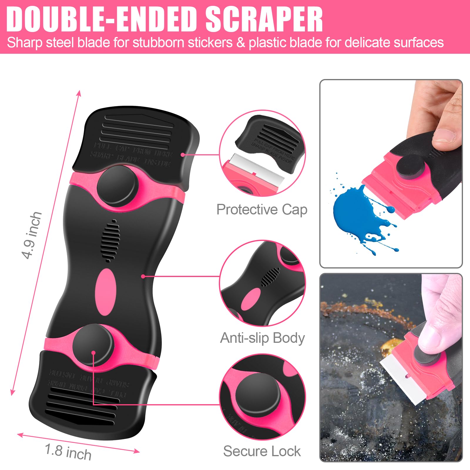 - 【Wide Application】 The sharp steel blade efficiently removes stubborn grease stains, registration stickers, adhesive residue on windshields or stove top. While the non-scratch plastic scraper is perfect for delicate surfaces, ideal for container labels and appliances.