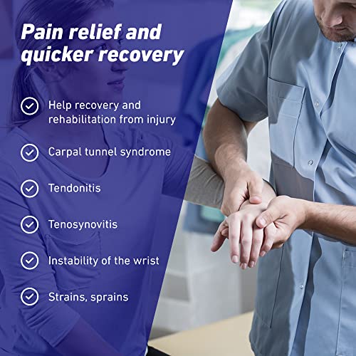 - PAIN RELIEVING WRIST SUPPORT: Medically engineered to help relieve pain associated with Carpal Tunnel Syndrome, arthritis, tendonitis or tenosynovitis. The removable metal splint allows variable stabilisation of the wrist and hand whilst the malleable thumb splint helps immobilise the thumb joint