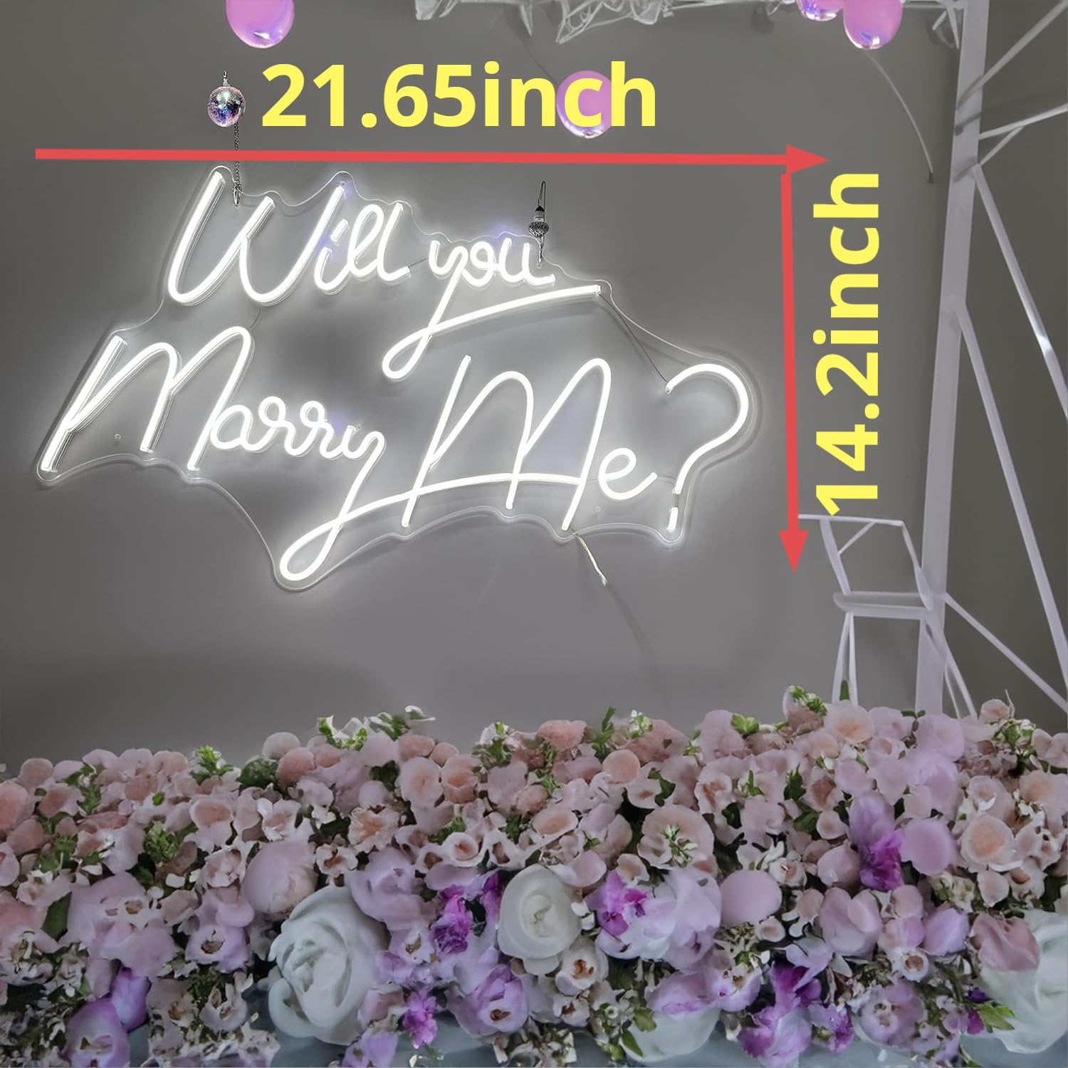 - đ5ăWIDELY APPLICATIONăWill You Marry Me? size: 21.7âL *14.2âW. Big size neon lights could be as a perfect choice for any age. Bright but not glaring, perfect for baby shower decorations, gender reveal & first birthday favors, birthday party, wedding decor, home decor, bedroom wall, bars, cafes, beer, restaurant etc.