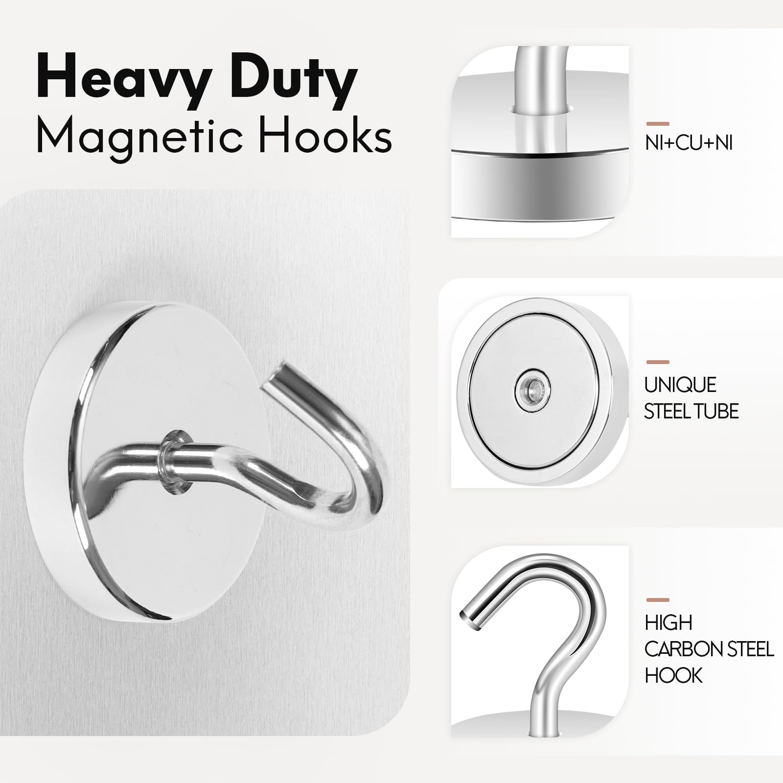 - HIGH-QUALITY PLATING FOR LONG-LASTING DURABILITY-Our magnetic hooks feature a triple-layer coating of bright nickel, copper, and bottom nickel, ensuring a rust-free, mirror-like finish that resists scratches and corrosion. Ideal for both indoor and outdoor use, these strong metal hooks are perfect for your kitchen, fridge, doors, walls, or any industrial setting. Maintenance-free and built to last!