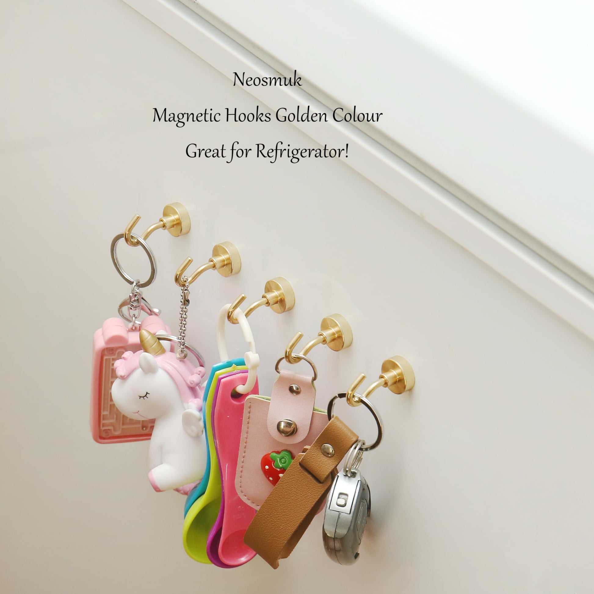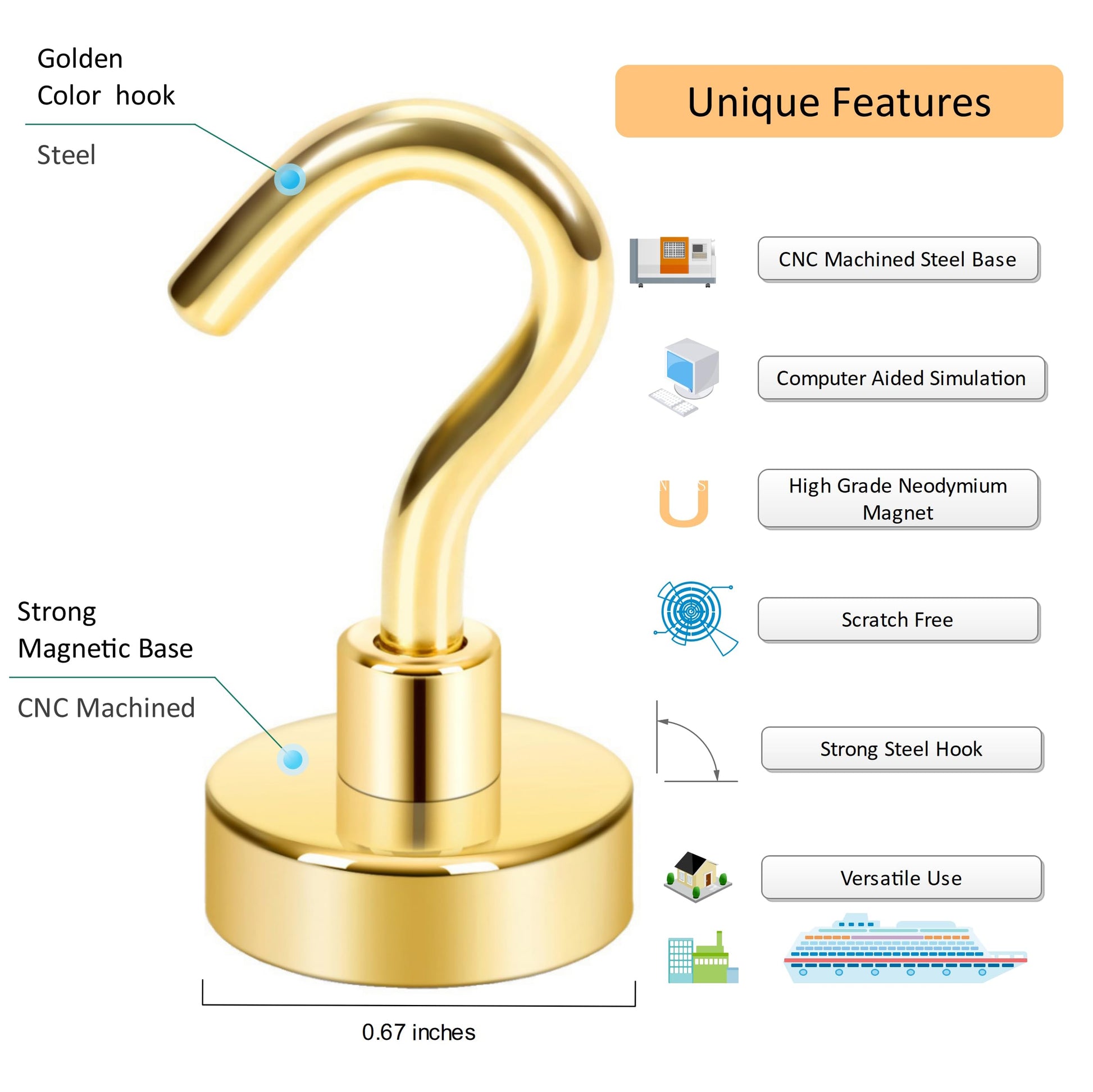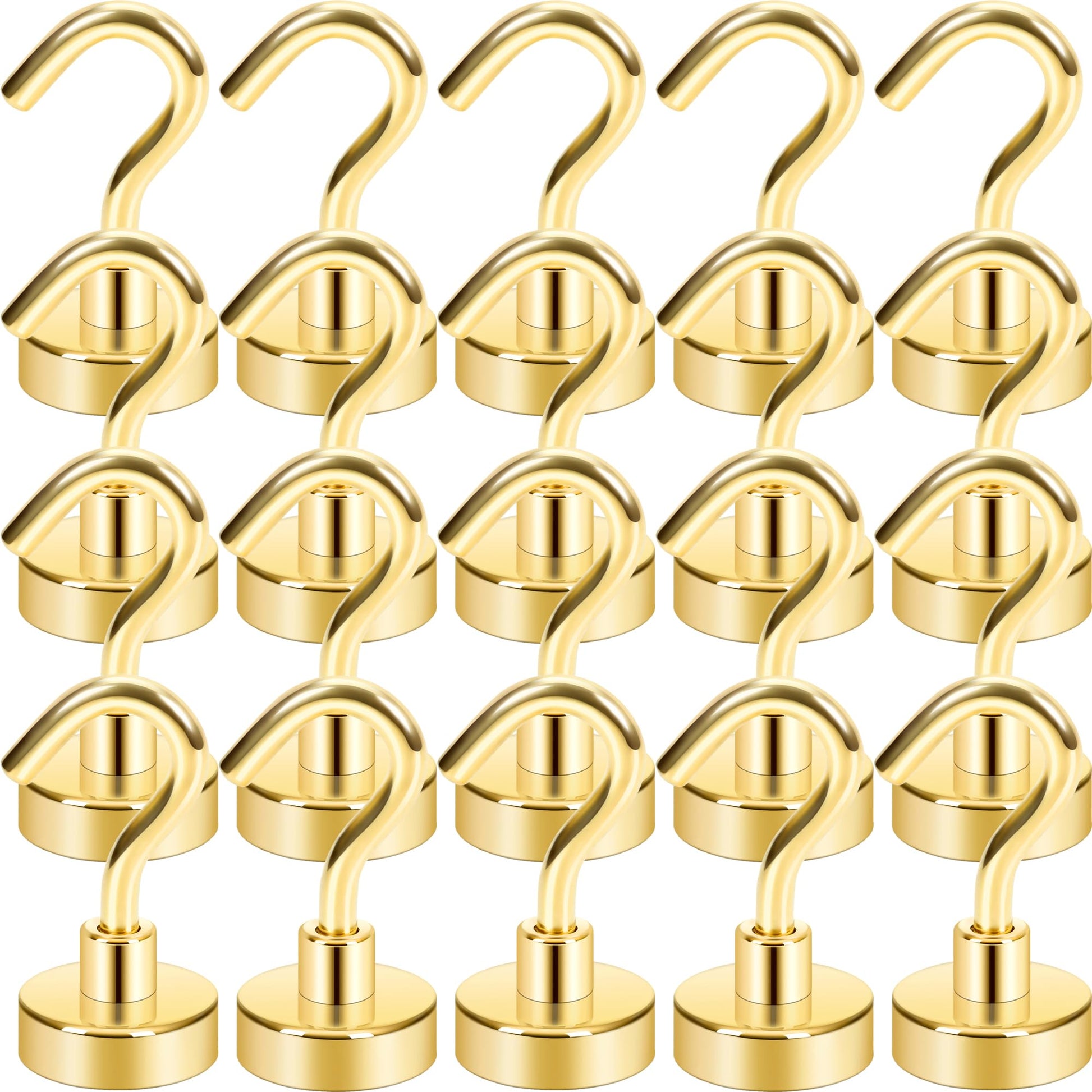 Neosmuk Magnetic Hooks,Heavy Duty Earth Magnets with Hook for Refrigerator, Extra Strong Cruise Hook for Hanging, Magnetic Hanger for Cabins, Grill (Gold, Pack of 20)
