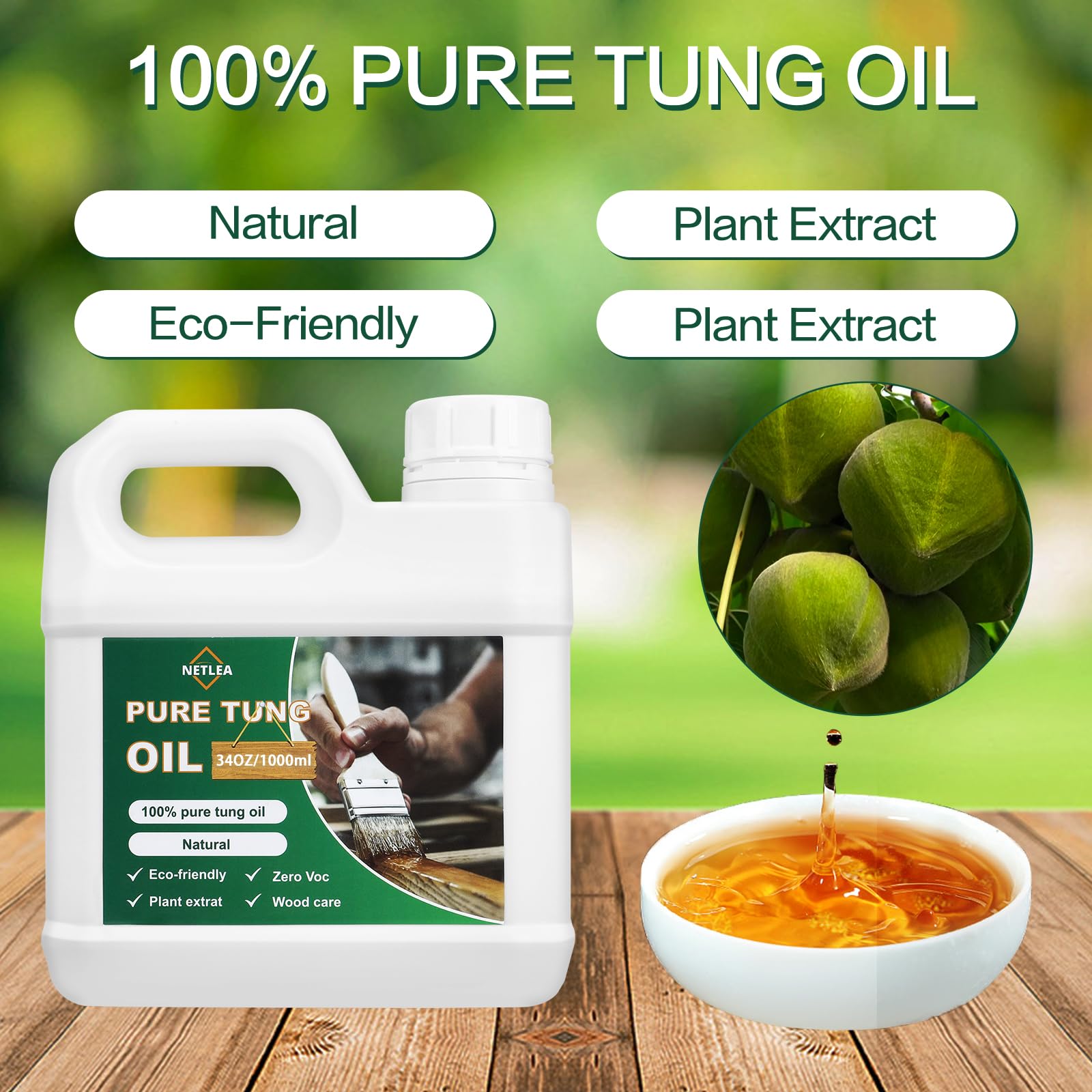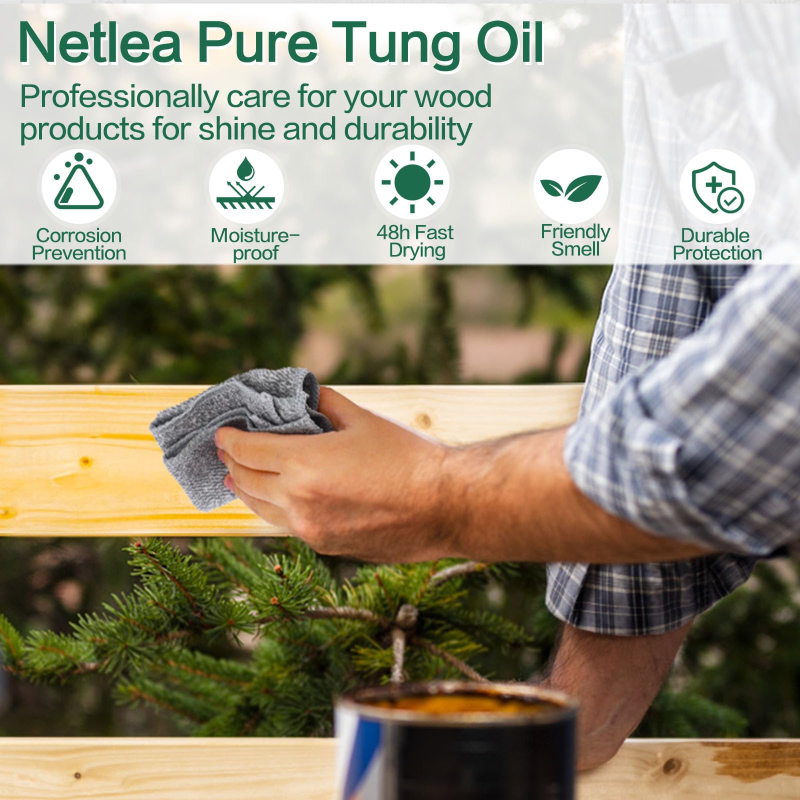 NetLea 100% Pure Tung Oil for Wood Finish,Food Safe for Furniture,Countertop,Cutting Board,Indoor & Outdoor Furniture,Wood Floor