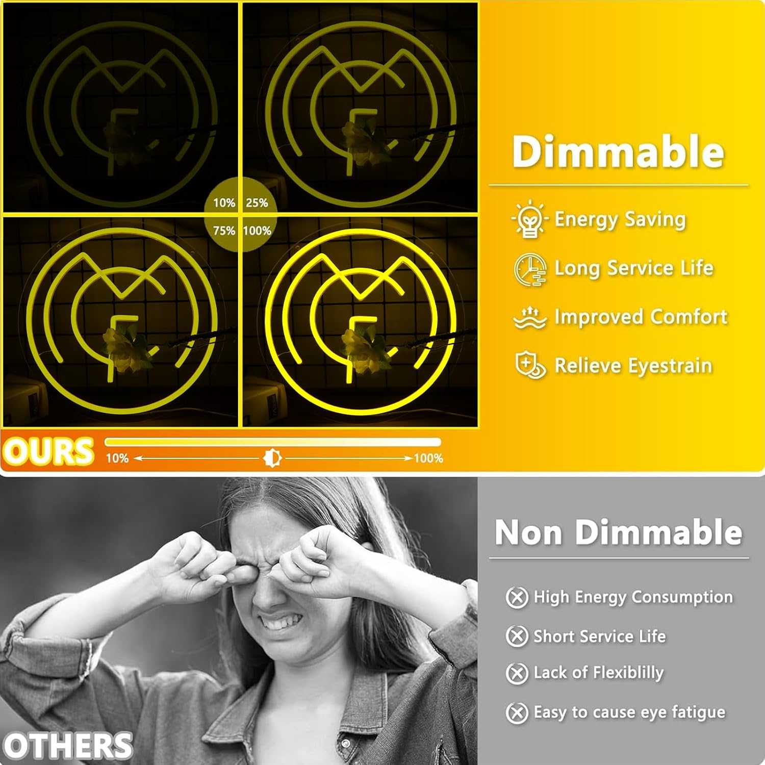- β¨Safety and durabilityβ¨. Compared with the old-fashioned glass neon sign, the neon tube does not generate heat and can be touched with confidence. This eco-friendly LED light sign (13*14.5inches) is powered by a 5V power adapter (5 feet/1.4 meters) with a clever design that supports brightness adjustment for extended use (power adapter not included).