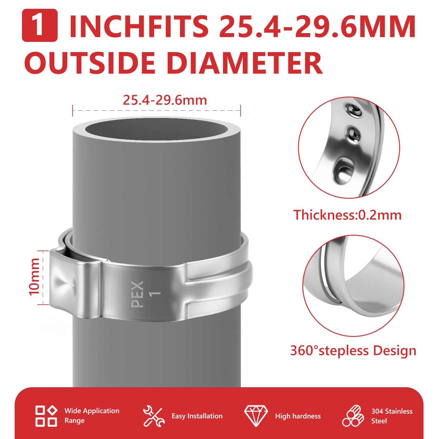 - 【Pex Crimp Pings】Crafted from heavy‑duty 304 stainless steel, these pex crimp rings resist rust, salt and corrosion. Smooth, deburred edges protect your pex fittings from nicks or abrasions and deliver long‑lasting durability.