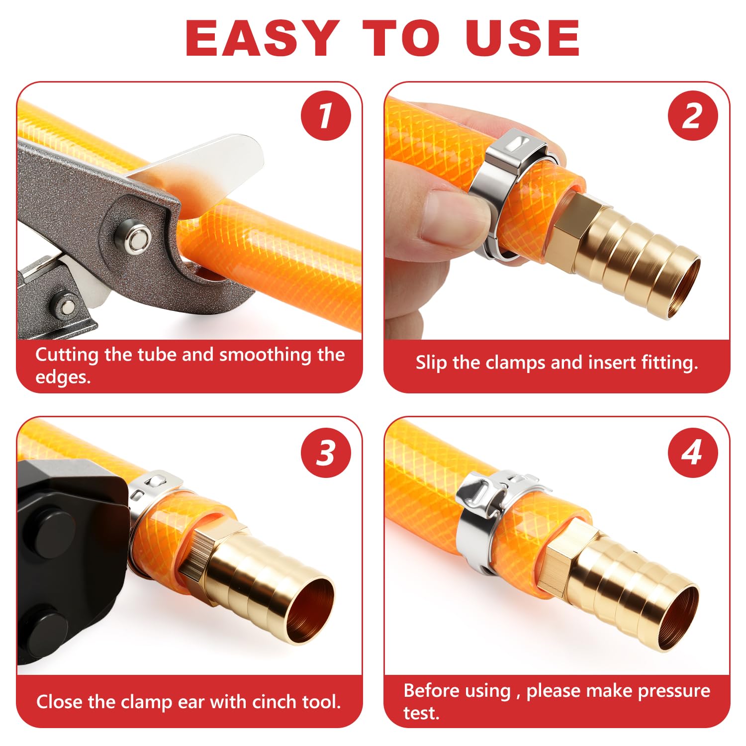 - 【Enhanced Design】Single‑ear construction makes installation faster, stronger and easier than traditional screw‑type clamps. The special lug compensates for thermal expansion, ensuring your hose remains sealed even as pipe size changes.