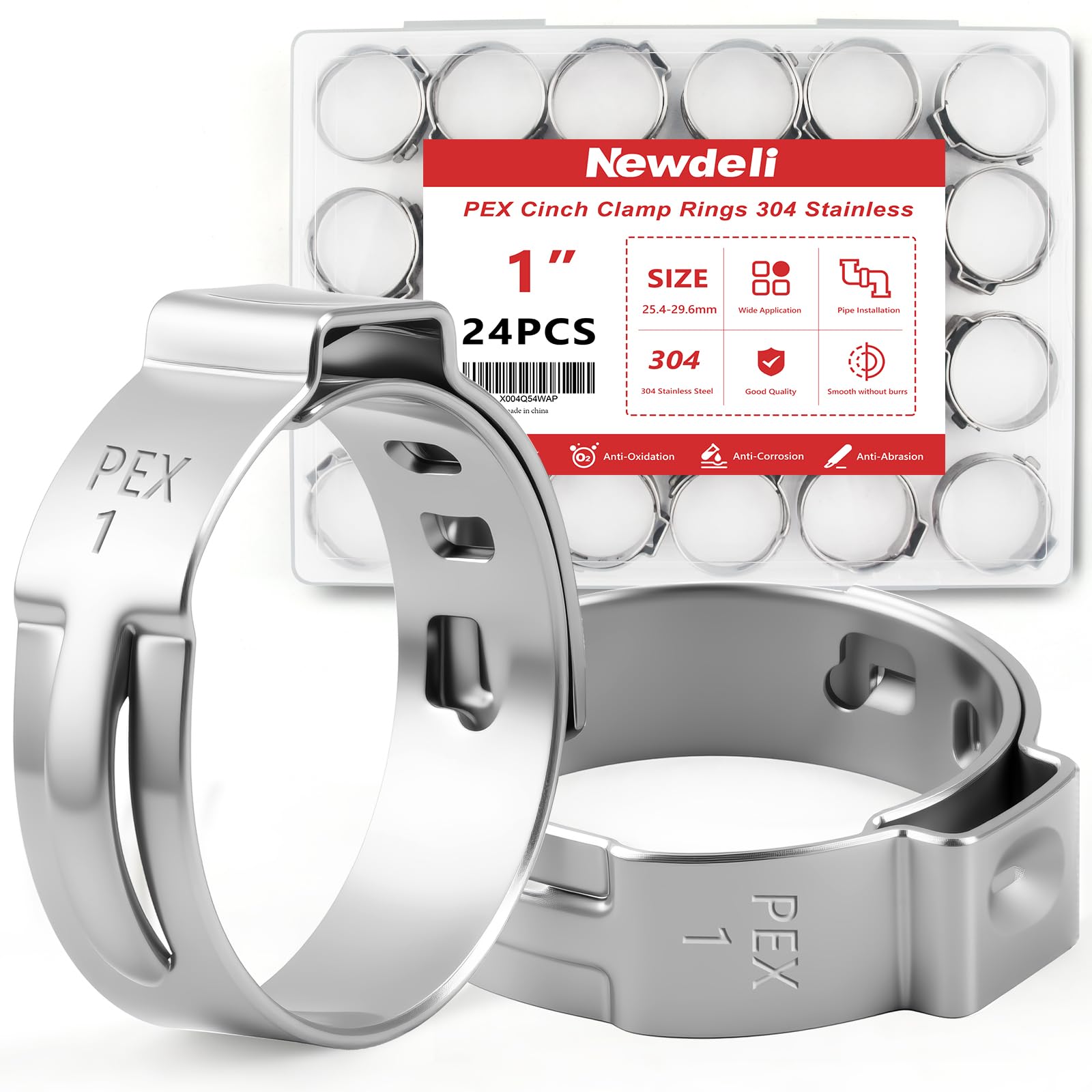 Newdeli 24pcs 1 inch Pex Crimp Rings Stainless Steel PEX Clamps Single Ear Hose Clamps Pex Fittings Cinch Pinch Clamp for Pipe Tubing Plumbing