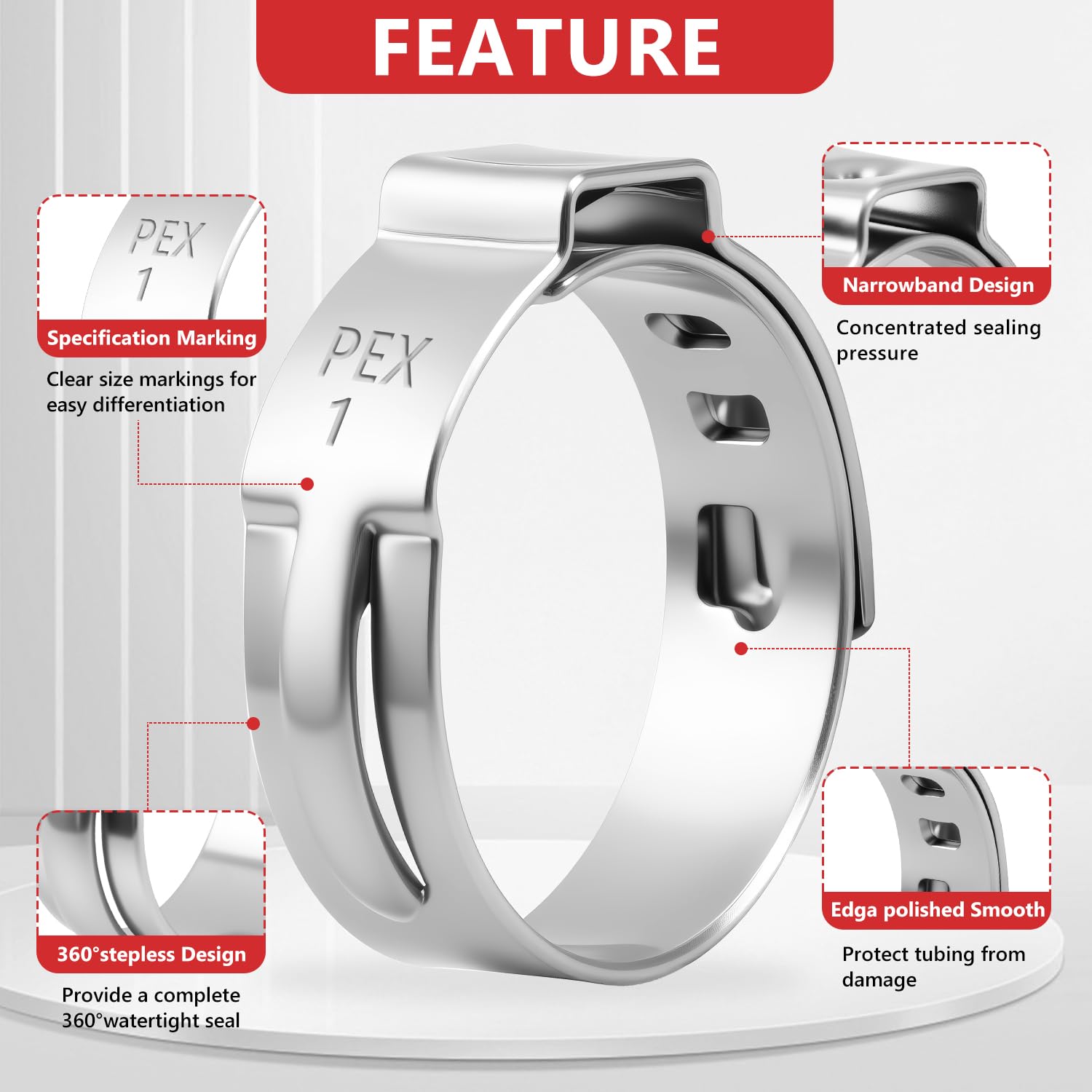 - 【360° Leak‑Proof Seal】Newdeli pex clamps feature an interlocking ring and infinitely variable adjustment for uniform 360° compression. This creates a perfect, leak‑free connection on every joint.