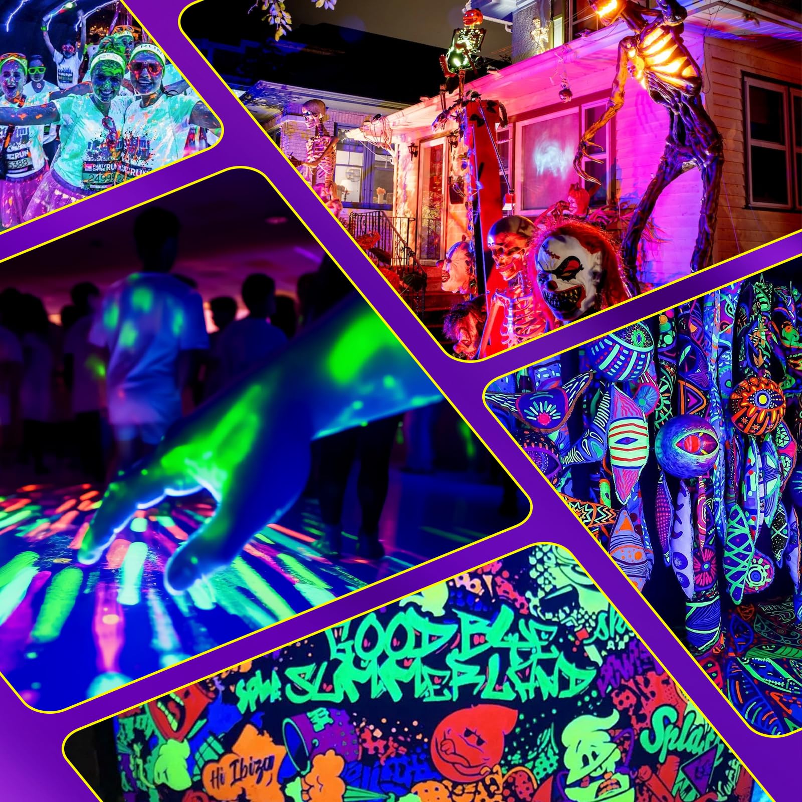 - More interesting applications: NEWREACH blacklight bar are mainly used to make fluorescent objects emit perfect fluorescent effects, which are very suitable for Halloween decoration, fluorescent paint, neon posters and uranium glass. Used in bedrooms, classrooms, game rooms, DJ lighting, danceing floor, KTVs, and other spaces, it creates an excellent atmosphere