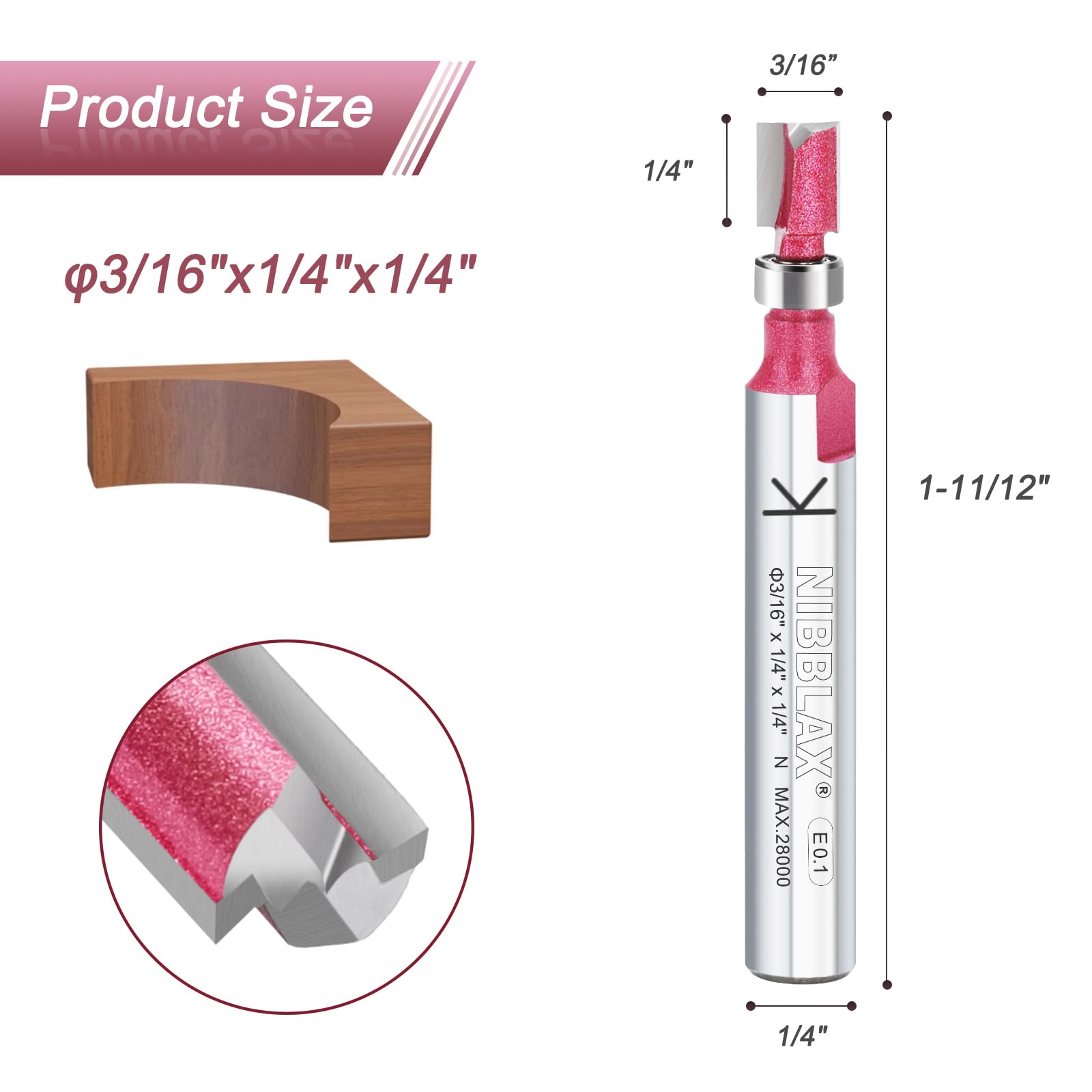 - NIBBLAX Top Bearing Flush Trim Bit - 3/16"Dia x 1/4" Cutting Length x 1/4"Shank