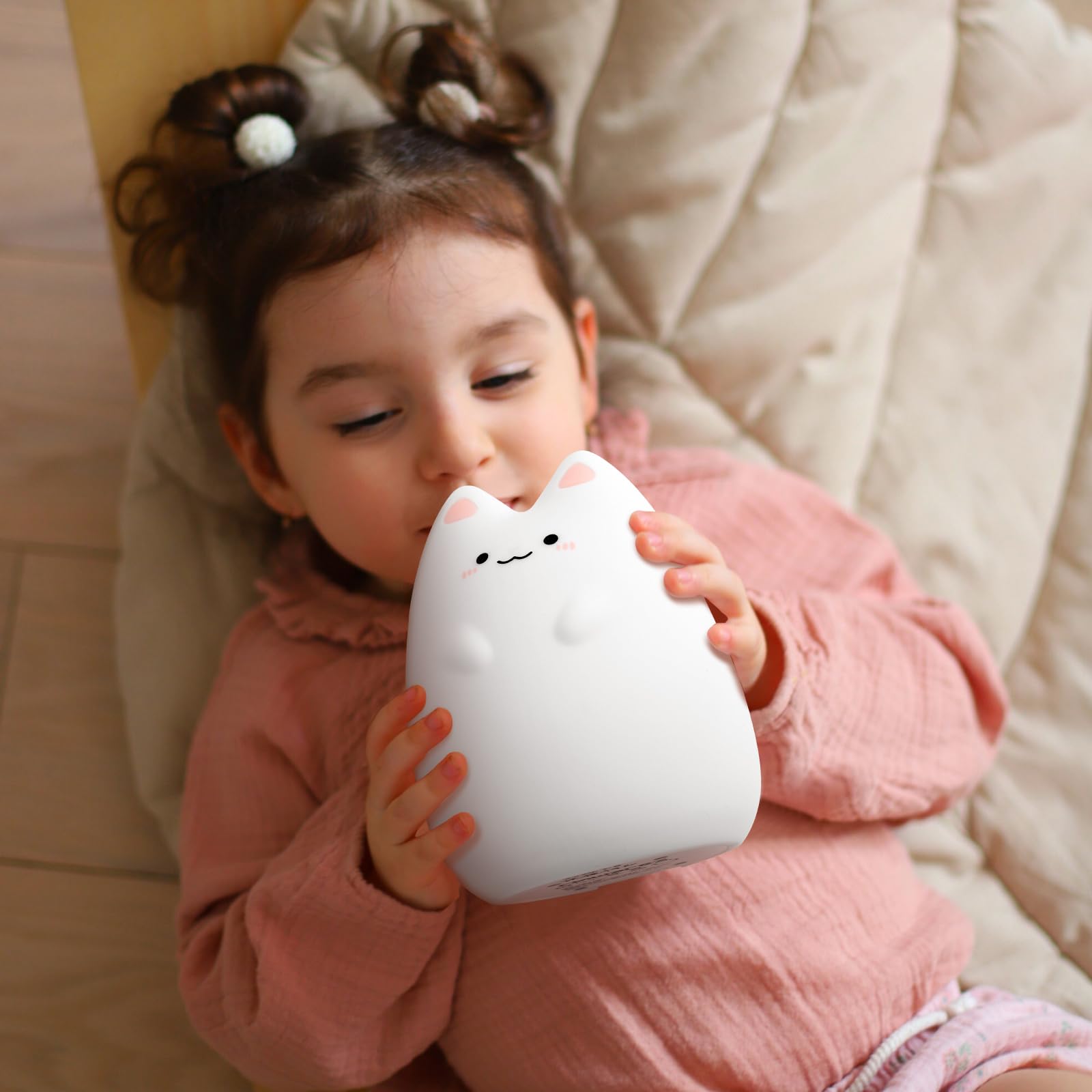 Nice Dream Cat Night Light for Kids, 9 Color Changing Baby Cute Night Light with Remote&Timer, Rechargeable Cat Kids Night Lamp for Boys Girls Nursery Bedroom, Kawaii Gifts (5.9"x4.7"x4.7")