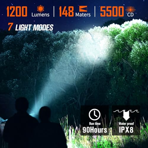 - Pocket rechargeable flashlights with 7 modes, made of aluminum alloy, high powered tactical flashlight with clip, max 1200 lumens with 161 feet beam throw. It can light up the entire room at darkness. 5500cd.