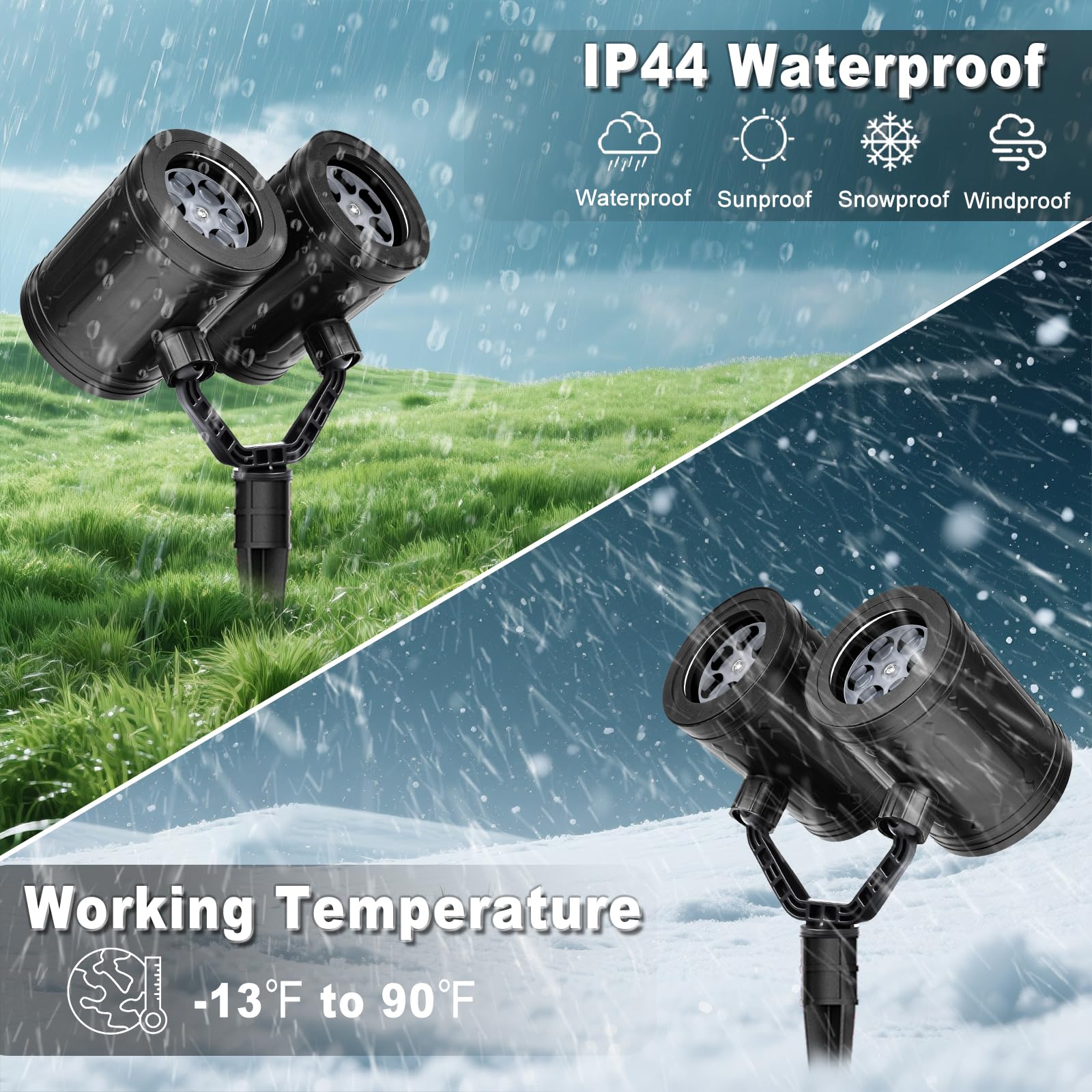 - 【Waterproof Design】The body of the light is designed with an IP65 waterproof rating, and our ghost projector Halloween lights can work normally within extreme temperature range of -13℉ to 90℉. It can withstand various outdoor weather conditions and is a reliable choice for Halloween decorations. However, the power adapter is IP44 waterproof, please keep the power adapter away from the water.