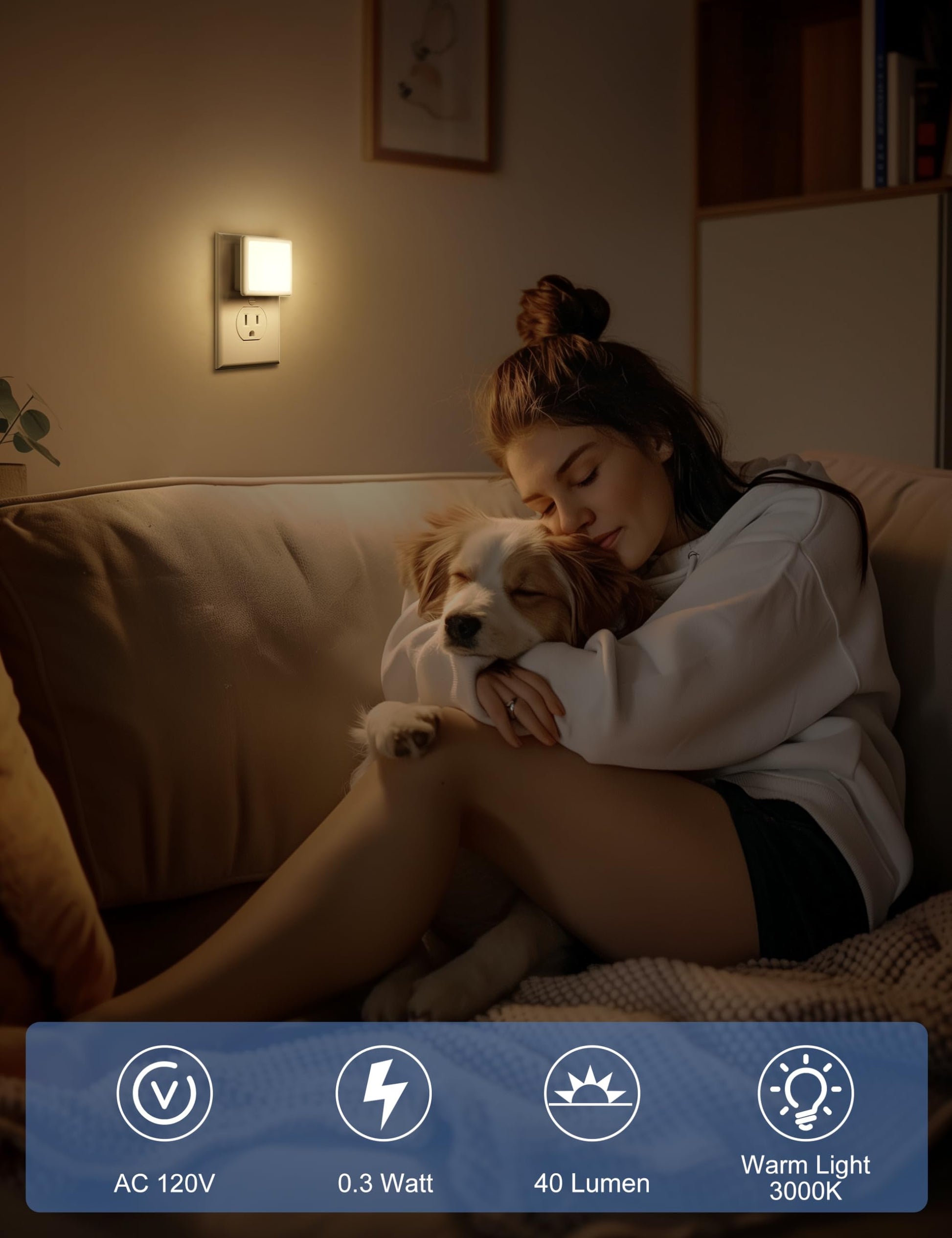 Night Lights Plug into Wall, LED Night Light with Dusk-to-Dawn Light Sensor, 0.3W Warm White Plug in Night Light for Kids, Bedroom, Adults, Bathroom, 2 Pack, Non-dimmable