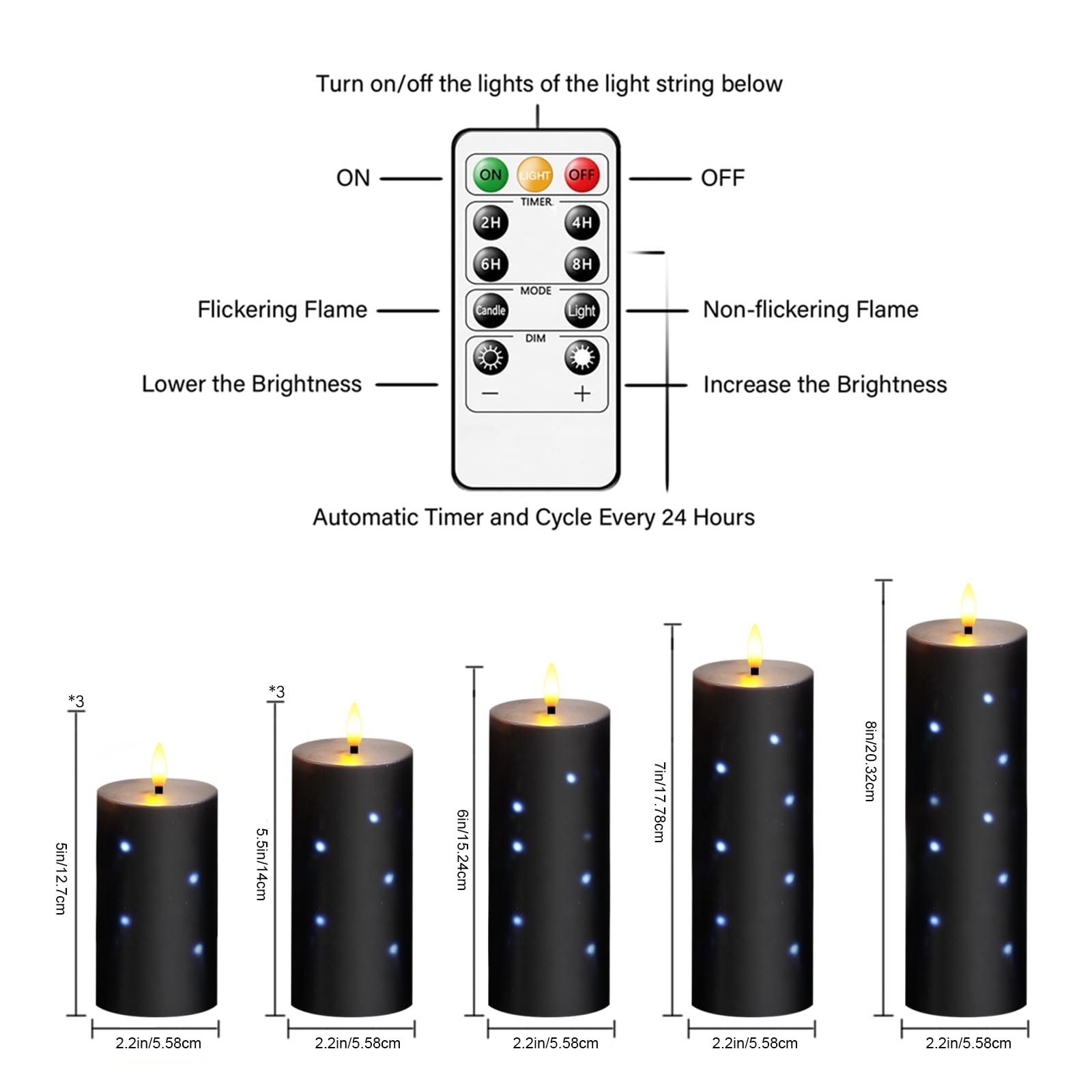 - 【Perfect Size Combination】:flameless pillar candles have a diameter of 2.2 inches, providing a substantial presence in any setting. They come in heights of 5"/ 5.5"/6"/7"/8", allowing you to create beautiful candle arrangements or display them individually to suit your preferences.