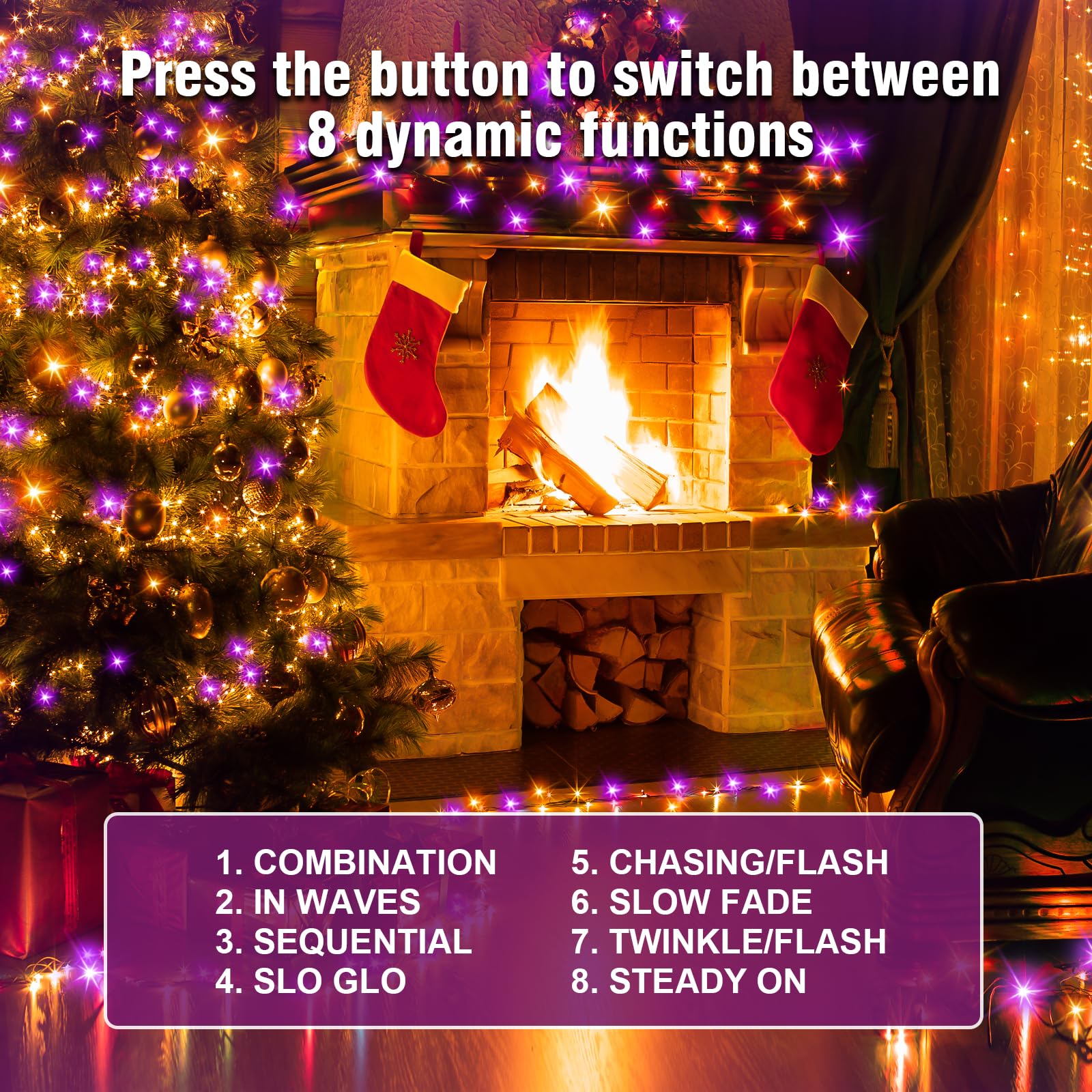 Nisocy 66FT LED String Lights Outdoor Waterproof – Purple Orange Fairy Lights with Plug, Connectable Christmas Tree Lights for Patio, Garden, Bedroom, Wedding, Party, Decor