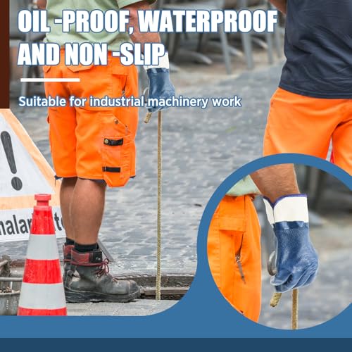 Nitrile Heavyweight Fully Coated Work Gloves, One Size Fits All for Men Oil Hauler Blue Chemical Resistant Gloves