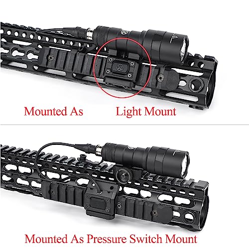 - Two functions, one is pressure switch, and the other is light mount. When used as tactical flashlight mount, please note that its slot width is 0.37 inch (9.42mm). Check whether the width of your flashlight base convex groove matches