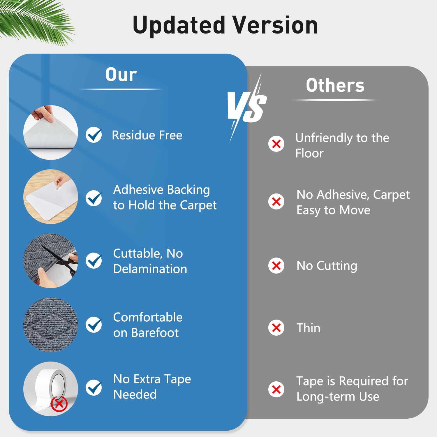 - 【Upgraded Anti-slip Stair Treads】:The surface of our stair treads is made of non-slip material provides a strong grip to protect your family and dog safe as they walk up and down the stairs. What's more,our stair mat feature the latest TPR self-adhesive technology with an adhesive that covers the entire carpet,compared to other stair mat on the market,the stair carpets stay in place better,reducing the risk of curling or tripping when up and down the stairs.