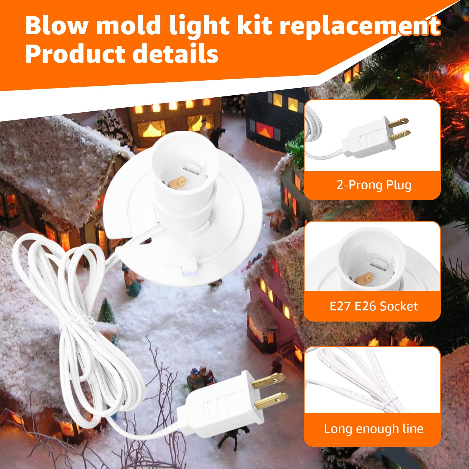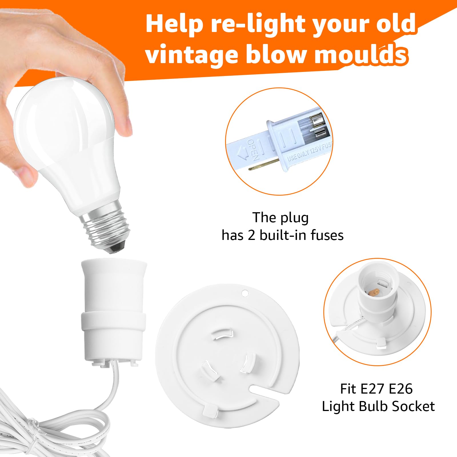 - Replacement Blow Mold Light Kit: Designed with E27/E26 bulb sockets, the light cord kit is suitable for a wide range of bulbs, including LED and incandescent, up to 250V 660W,E27 bulb socket has good heat dissipation performance to prevent burns and melting