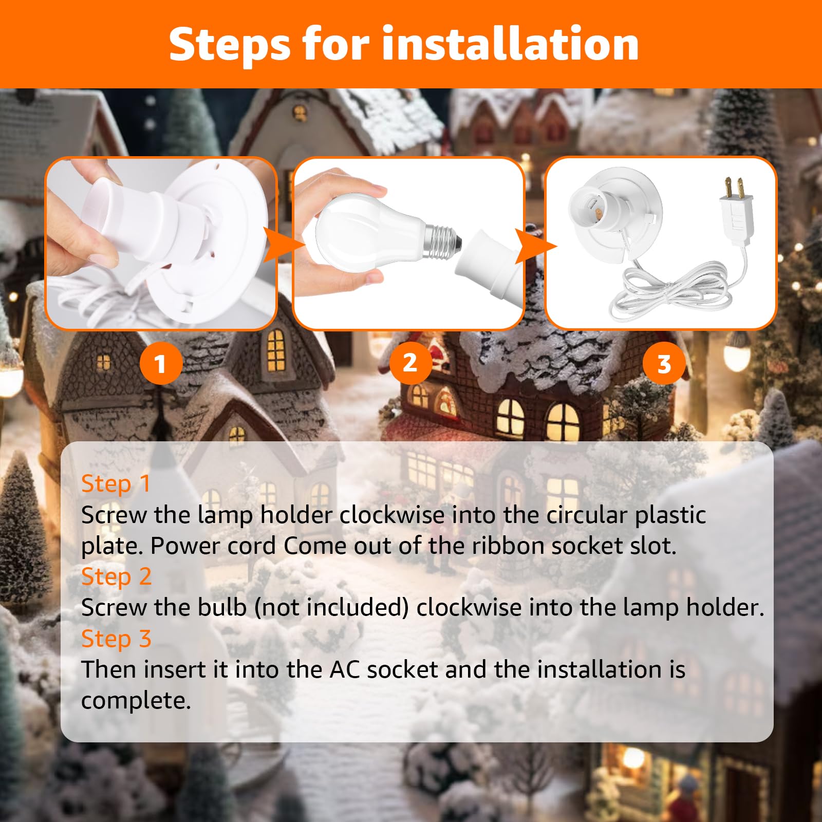 - Universal Compatibility: Designed with E27 E26 bulb sockets, the light cord kit is suitable for a wide range of bulbs, including LED and incandescent,Ideal for use with Christmas village lights, salt lamps, pumpkin lamps, and more