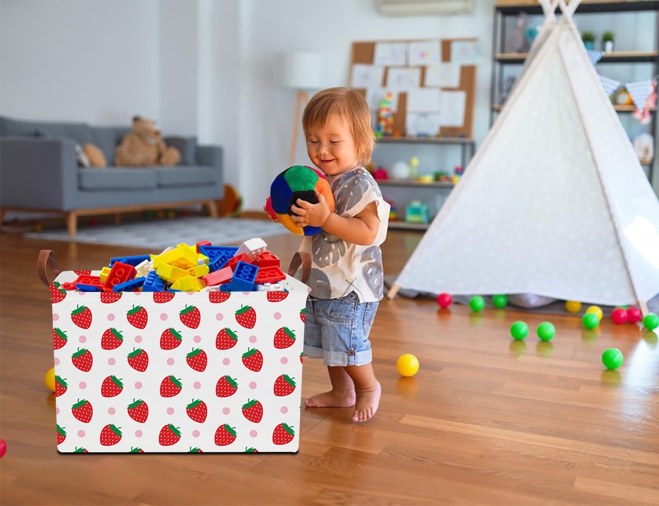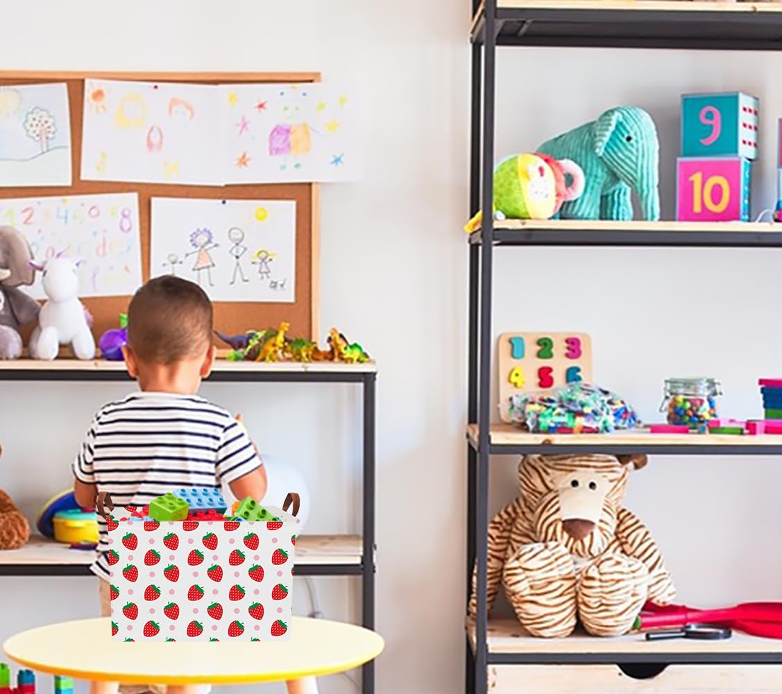 NTAOHAMPER Rectangular Storage Basket Empty, Storage Bin with Handles, Room Decor, Gift Basket, Book Box(Strawberry)