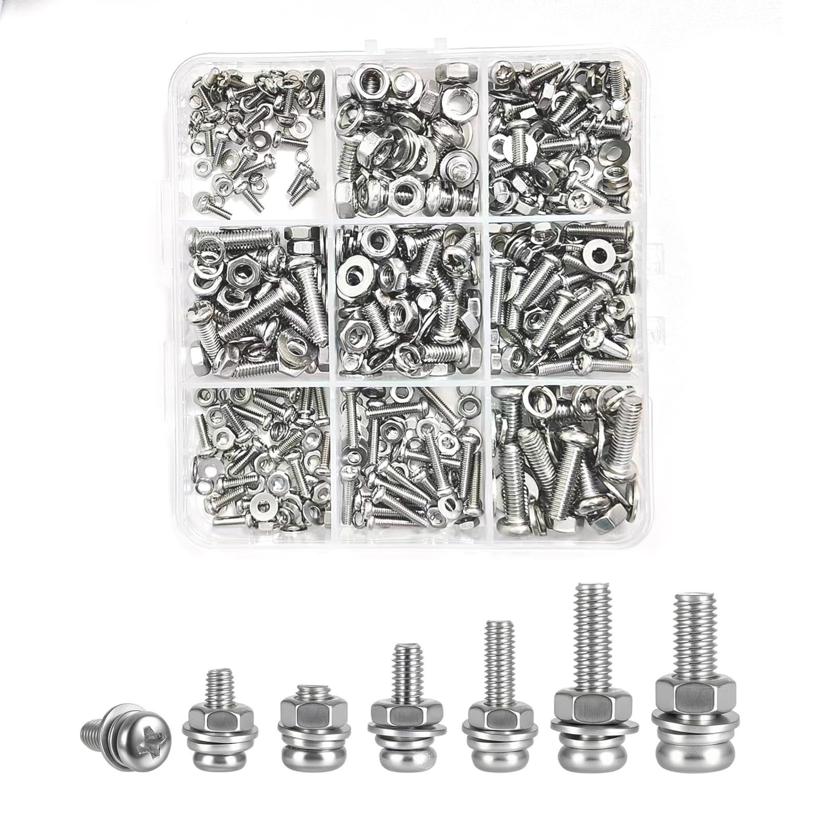 Details: 【304 Stainless Steel】:Stainless steel nut & bolt assortment sets, rust resistance and deep thread. 【Phillips Pan Head & 8 Different Sizes】:Including M2 M2.5 M3 M4 M5 screws. 528pcs small metric machine screws with phillips pan head SAE system and lock washers. 【Clean Sharp Cuts and No Burrs】:Pan Head with phillips drive adopts more advanced production technology. Better quality and use for a long time. 【Combination Screws】: Phillips pan head bolts screw nuts washers machine screws kit contains small screws: M2 x 6mm,16Sets; M2.5 x 8mm,16Sets; M2.5 x 12mm,16Sets; M3 x 8mm, 20Sets; M3 x 12mm, 20Sets; M4 x 8mm,15Sets; M4 x 16mm,13Sets; M5 x 8mm, 8Sets; M5 x 16mm,8Sets. Total is 528pcs. 【Wide Application】: Nuts and bolts set could be widely used in all kinds of precision machinery,instruments, household appliances, electronic products,communication products, locks, lamps, lights, toys,door handles, faucet, appliances, bicycle, furniture, socket,wall plate ,car, repairmen and other DIY.
