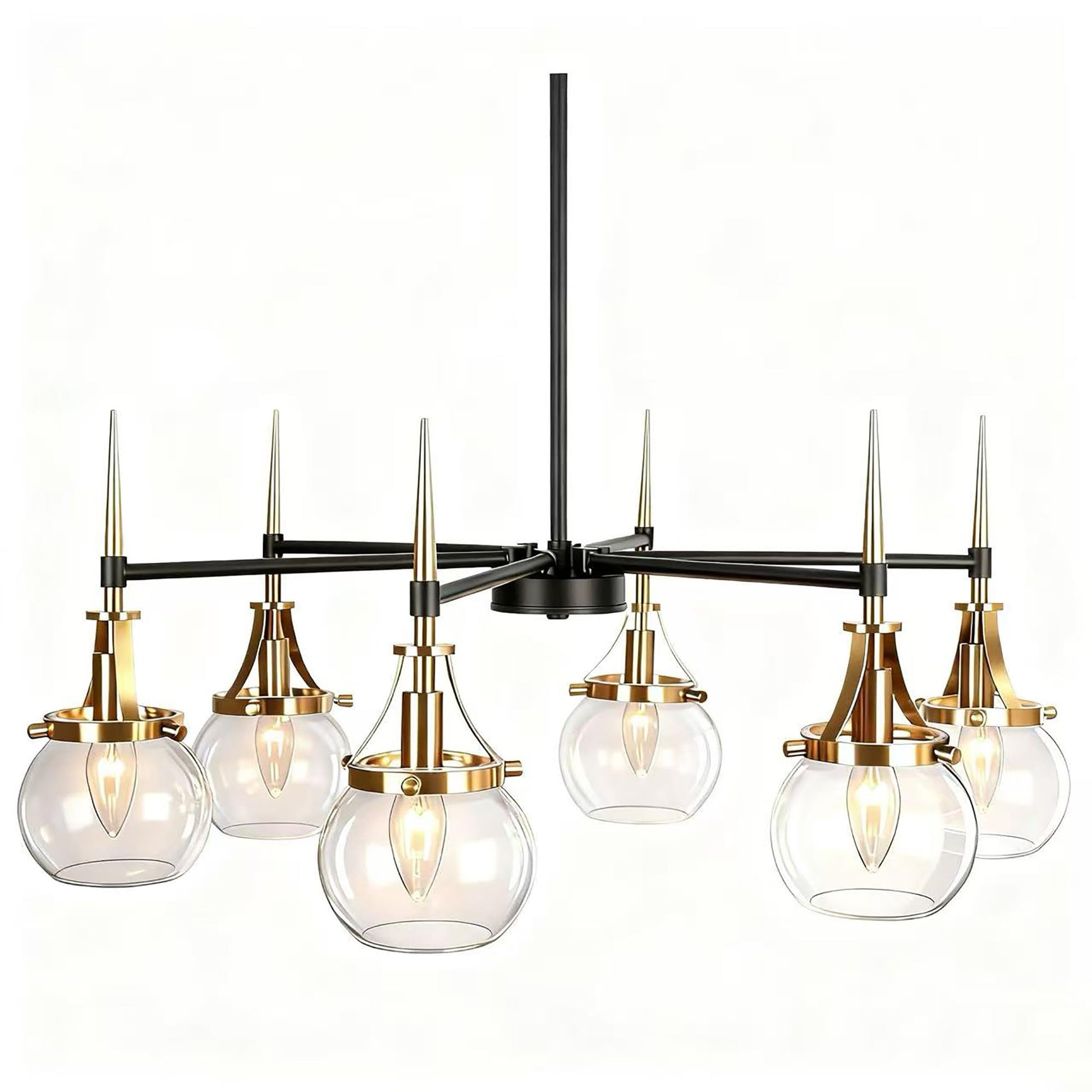 Obihivlo 6-Light Black Gold Bubble Chandelier Brass Antique Glass Globes, Mid Century Modern Pendant Lighting Fixture for Dining Room, Kitchen, Living Room, Bedroom, D27.6 x H71.5 Adjustable Height