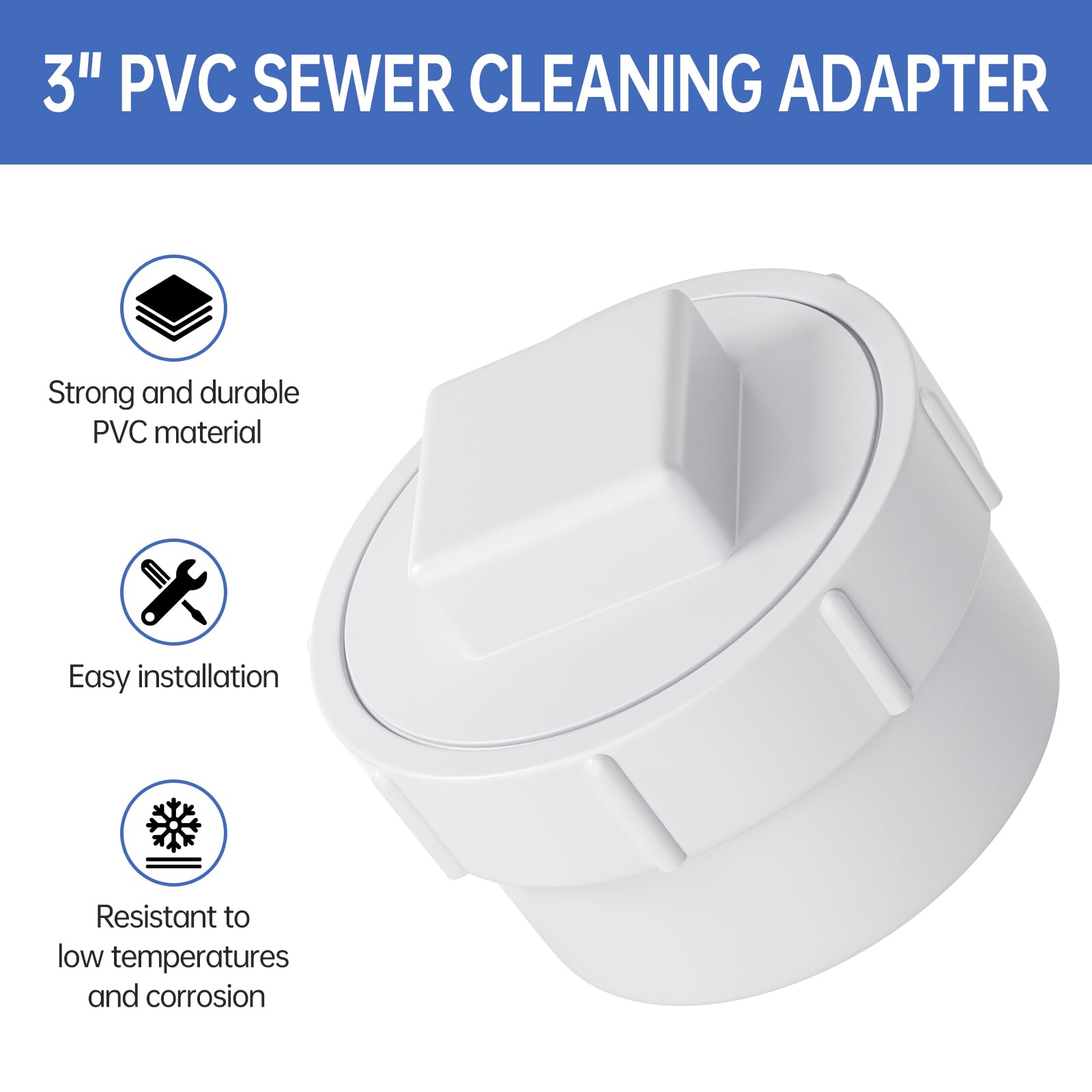 Oblectatio 3" PVC Sewer Cleanout Adapter with Plug Pipe Fitting - Durable DWV Flush Cap for Drainage Systems
