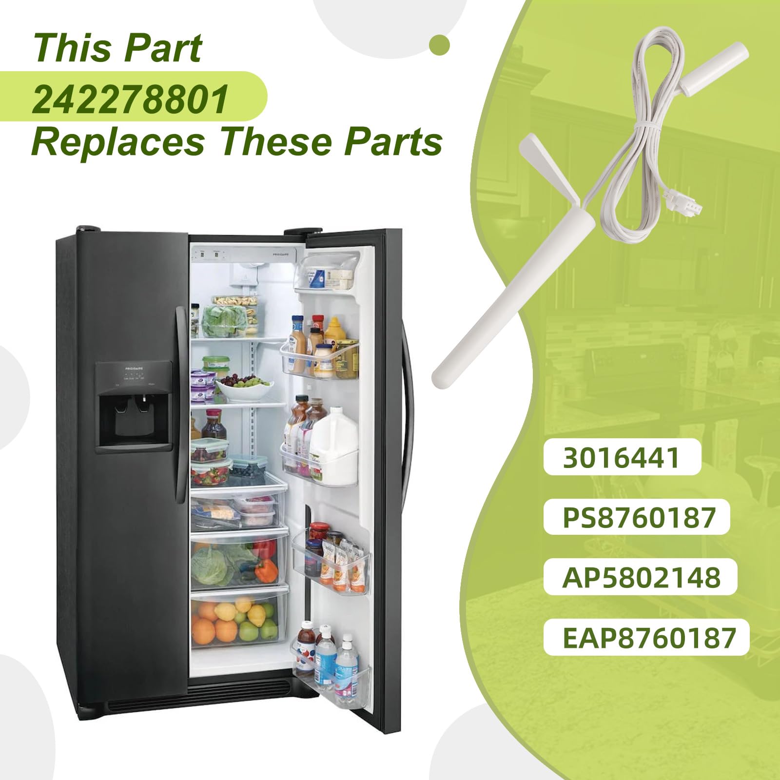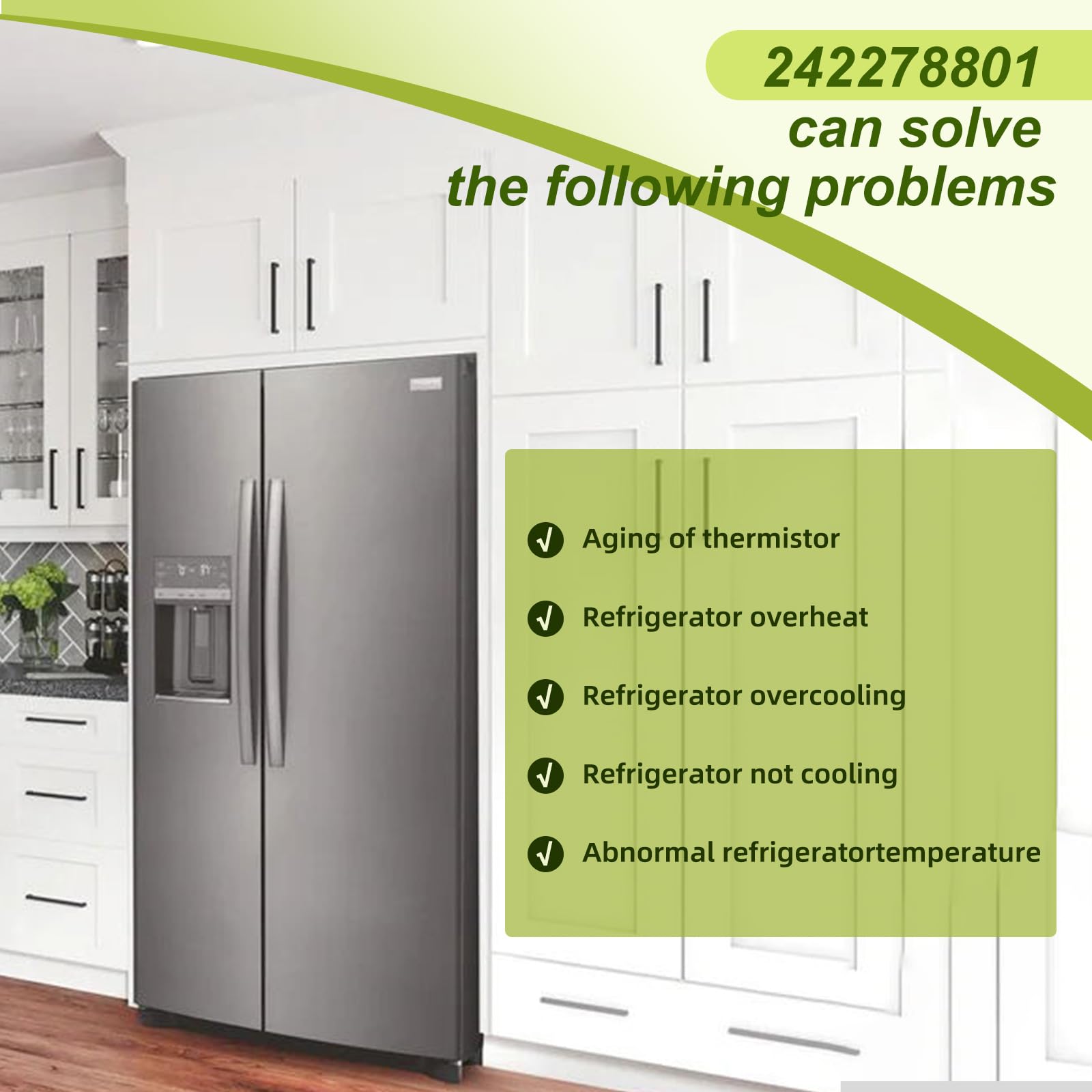 - 【Quality Material】 242278801 Refrigerator thermistor temperature sensors made of environmentally friendly epoxy resin coating,making it waterproof and resistant to moisture,which is more stable and strong