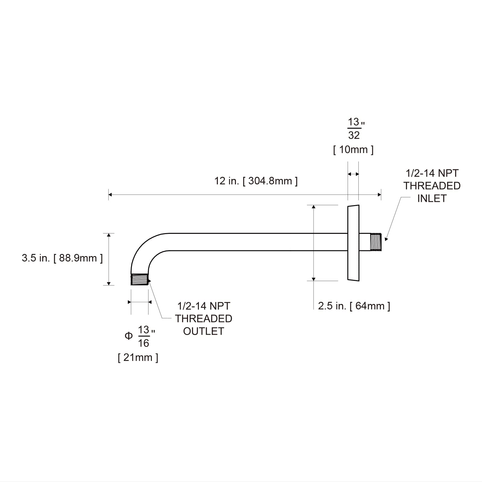 - [Installation and Specifications] Detailed instructions ensure worry-free installation. The product is 12 inches long, the thread specification of inlet is 1/2"-14 NPT, suitable for standard shower pipes. The thread specification of outlet is 1/2"-14 NPT (compatible with 1/2" IPS thread), suitable for sprinkles of standard interface.