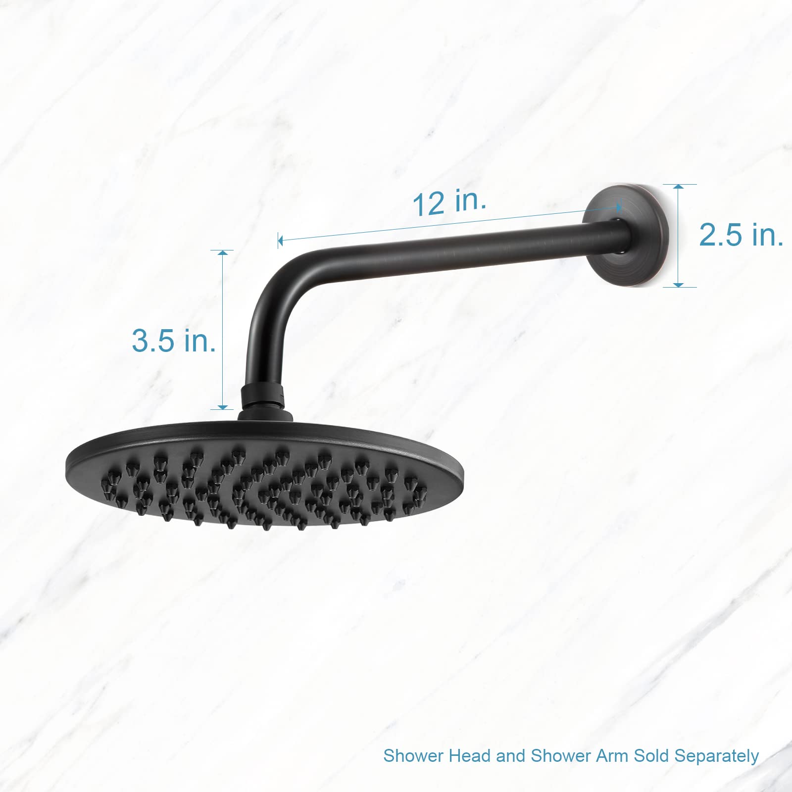 OFFO Shower Arm with Flange, 12 in Oil Rubbed Bronze Wall Mount Replacement Angle Shower Head Arm Wall-Mounted For Fixed Shower Head & Handheld Showerhead