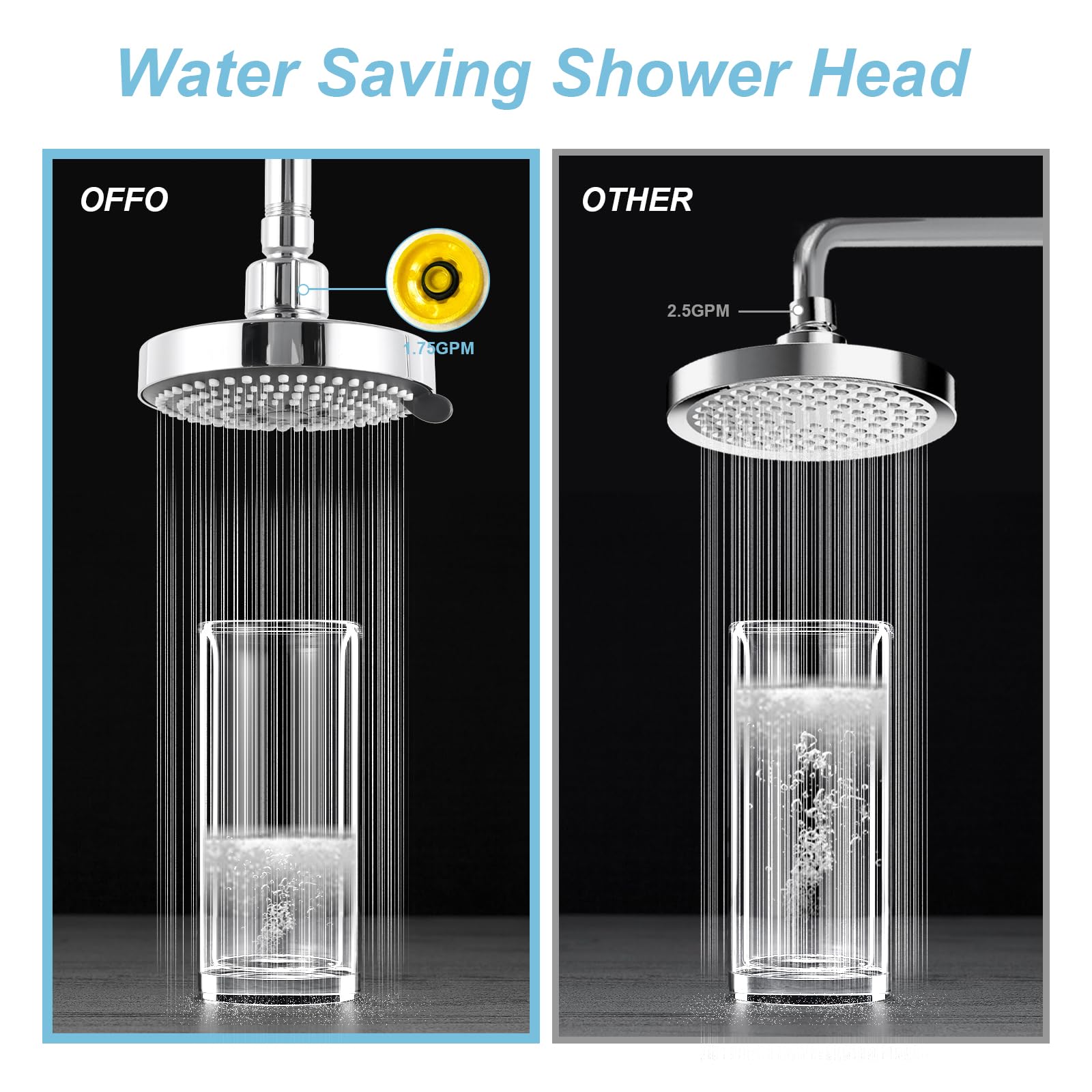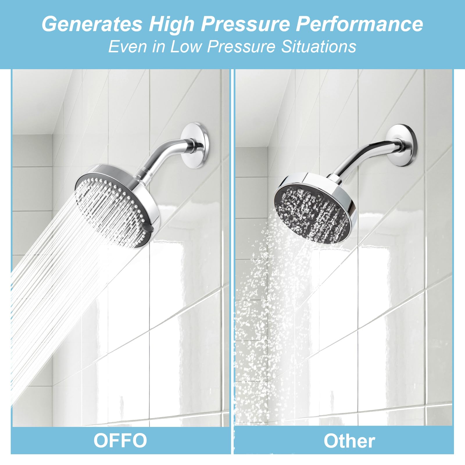 OFFO Shower Head, High Pressure Shower Head with 6 Mode, Fixed Showerheads for Strong Water Flow & Relaxing Shower Experience, Chrome