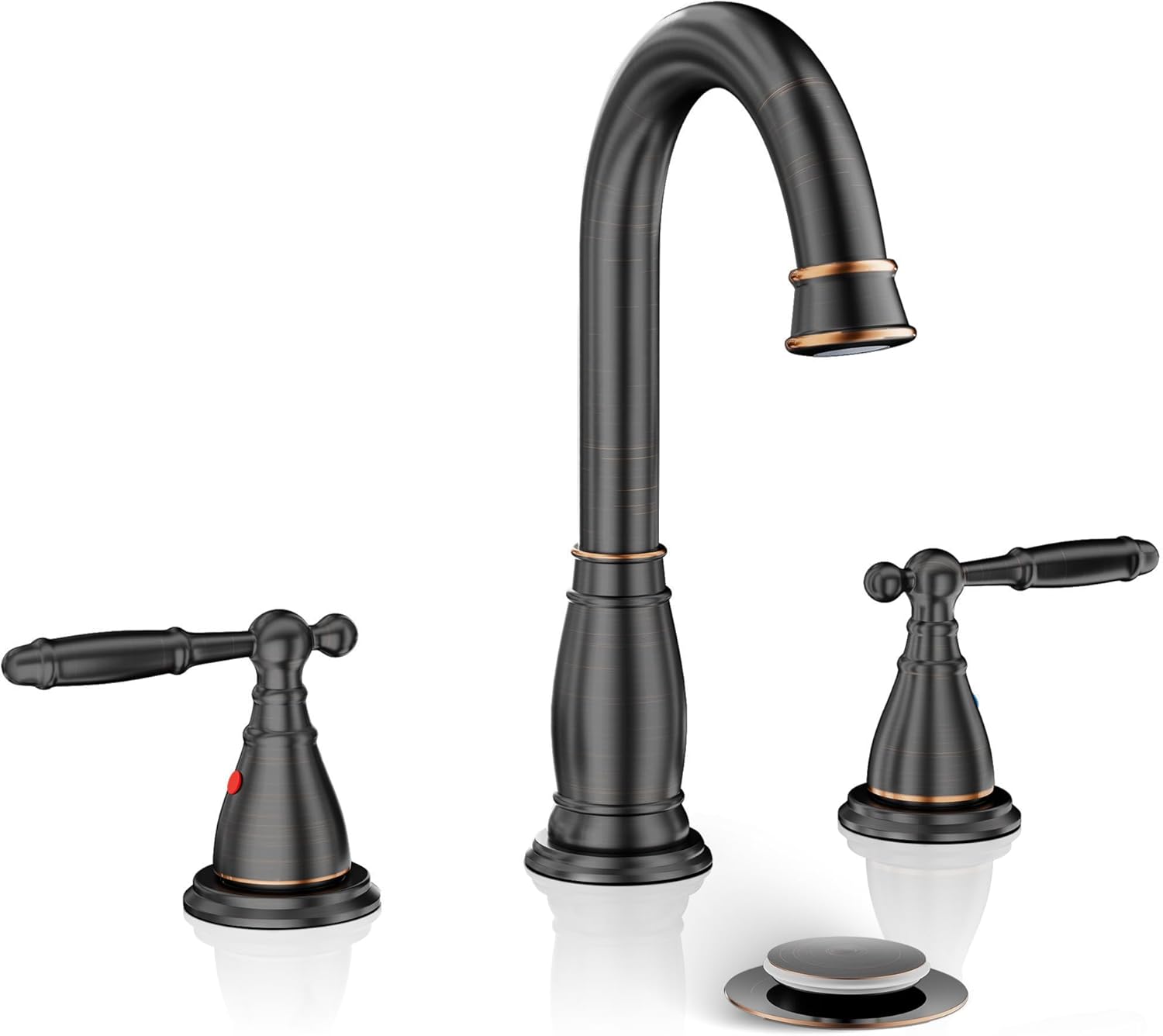 Oil Rubbed Bronze Widespread Bathroom Faucet Set with Valve & Drain - Phiestina WF017-4-ORB