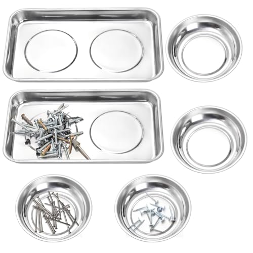 Okllen 6 Pcs Magnetic Parts Tray Set, Stainless Steel Heavy Duty 9.5"W x 5.5''L Square and 4 1/4" Round Extra Strong Magnetic Tool Trays Holder for Socket Screw Nuts Bolts Metal Parts