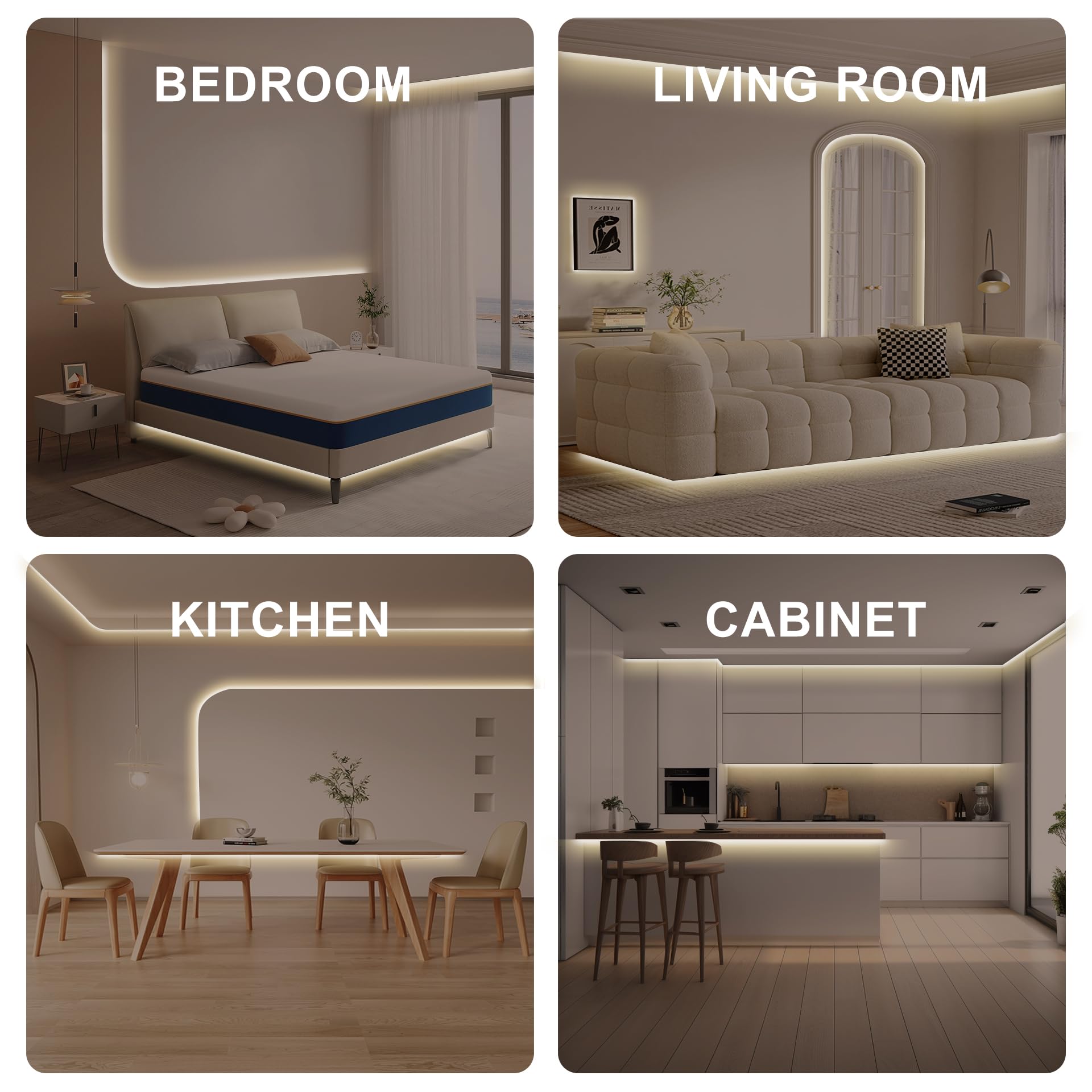 - Bright COB Strip Light: 16.4ft High density white led strip with 1600 leds makes light more soft and uniform brings more comfortable lighting mood, easy to light up dark area