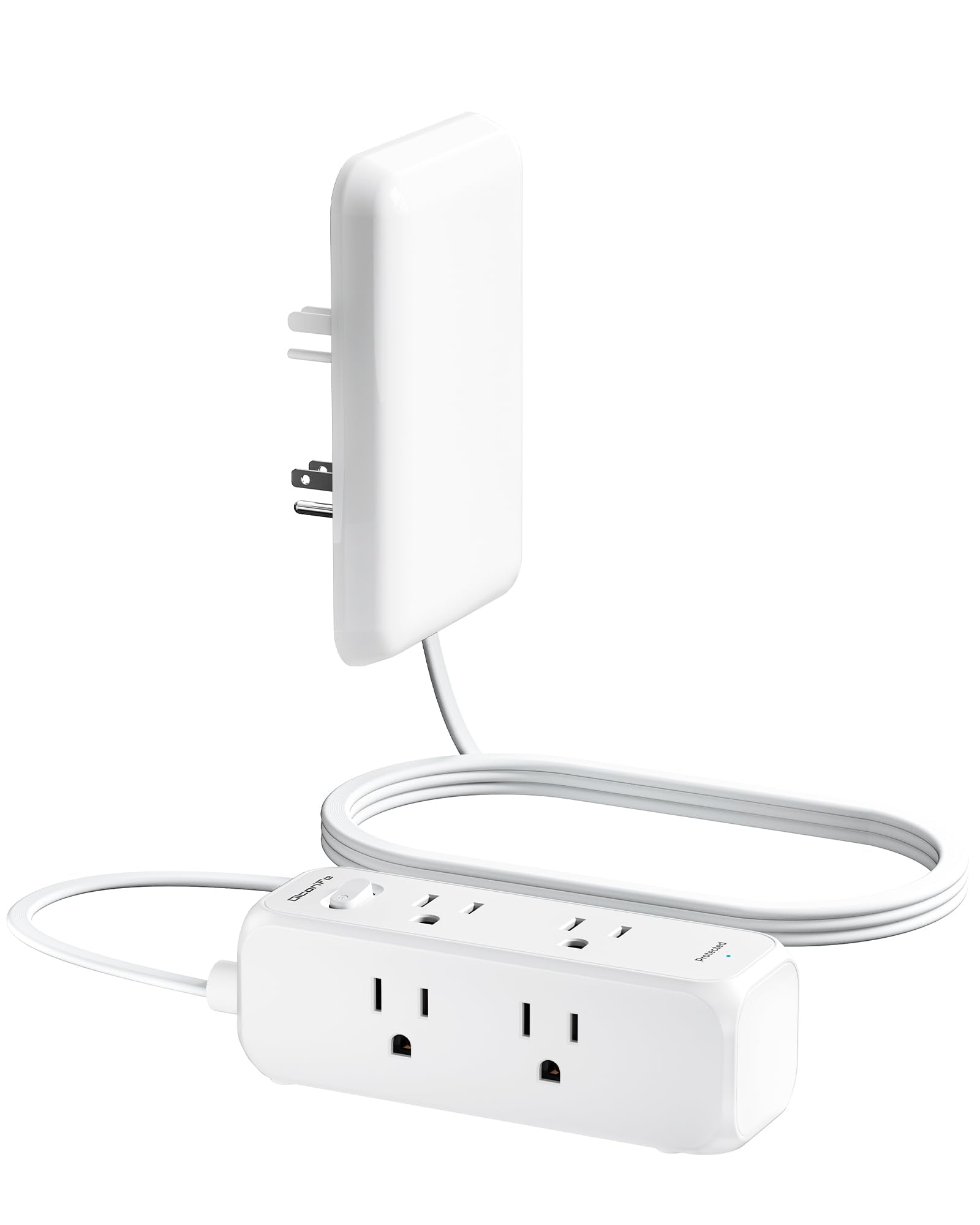 Details: Olcorife Flat Outlet Extender with Cover, Flat Plug Power Strip with 6 AC Outlets, 2000 Joules Surge Protector, 3FT Flat Extension Cord, Home Office Travel Dorm Room Essentials