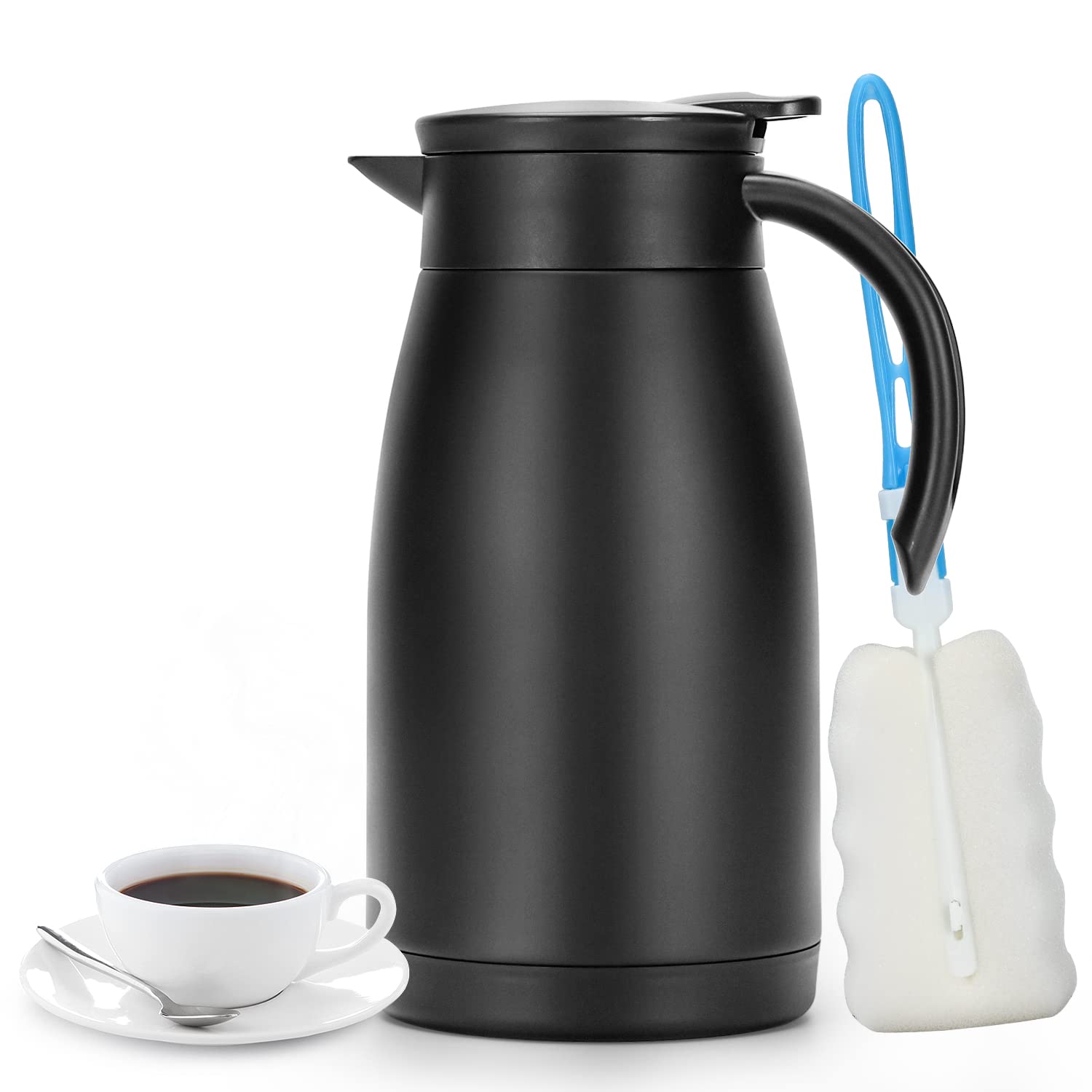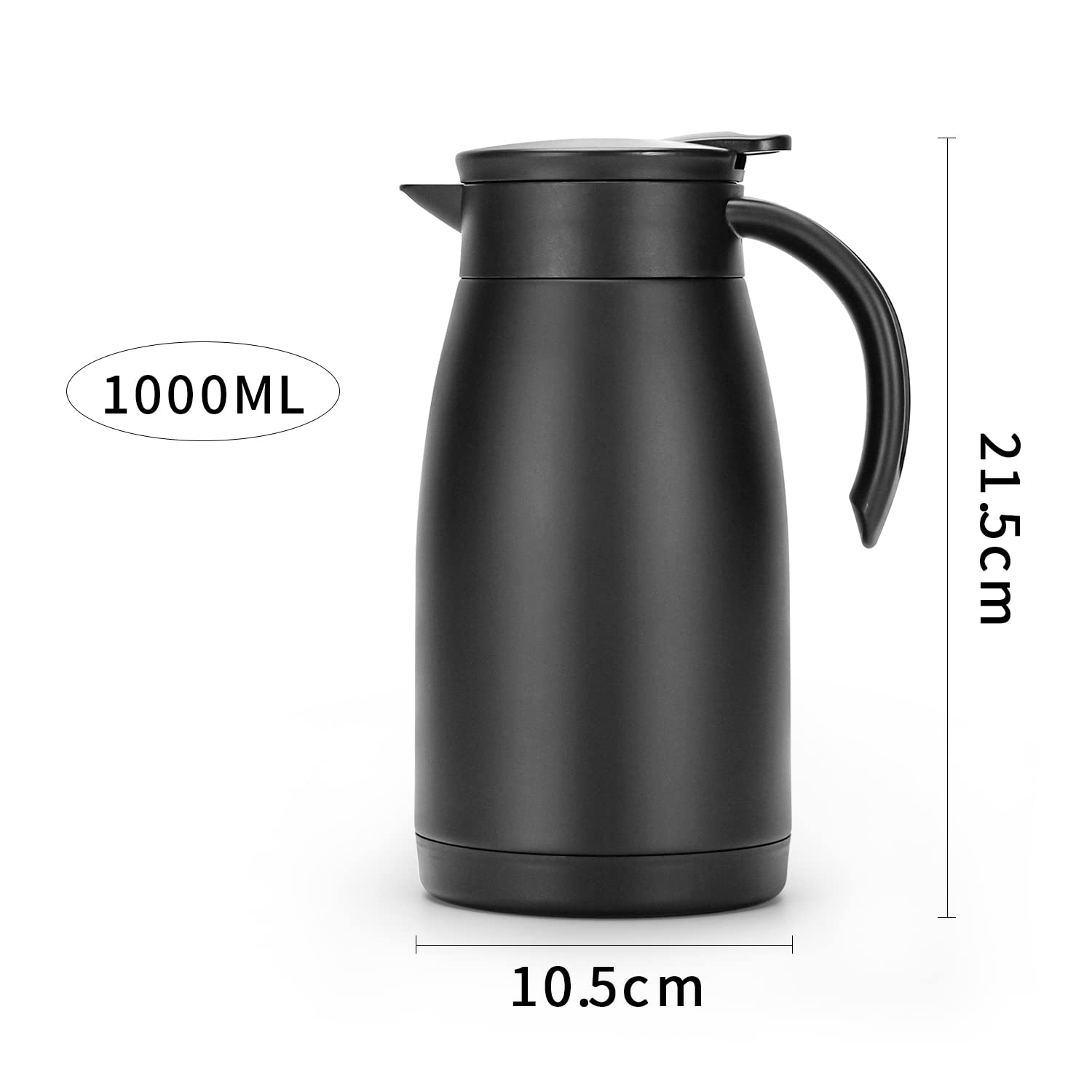 Olerd 34 Oz Thermal Coffee Carafe, Stainless Steel Insulated Vacuum Coffee Carafes For Keeping Hot, 1 Liter Tea, Water, and Coffee Beverage Dispenser(Black)