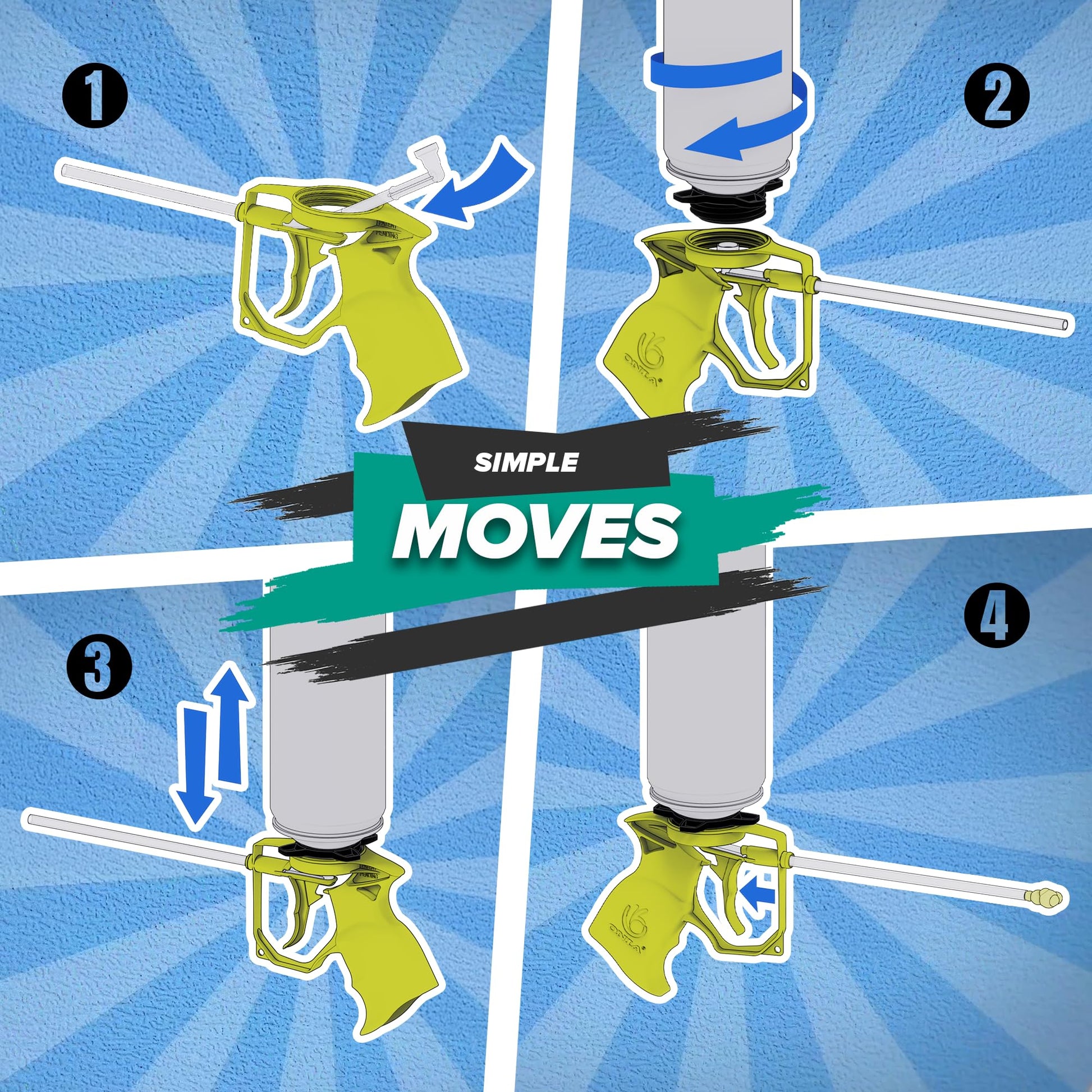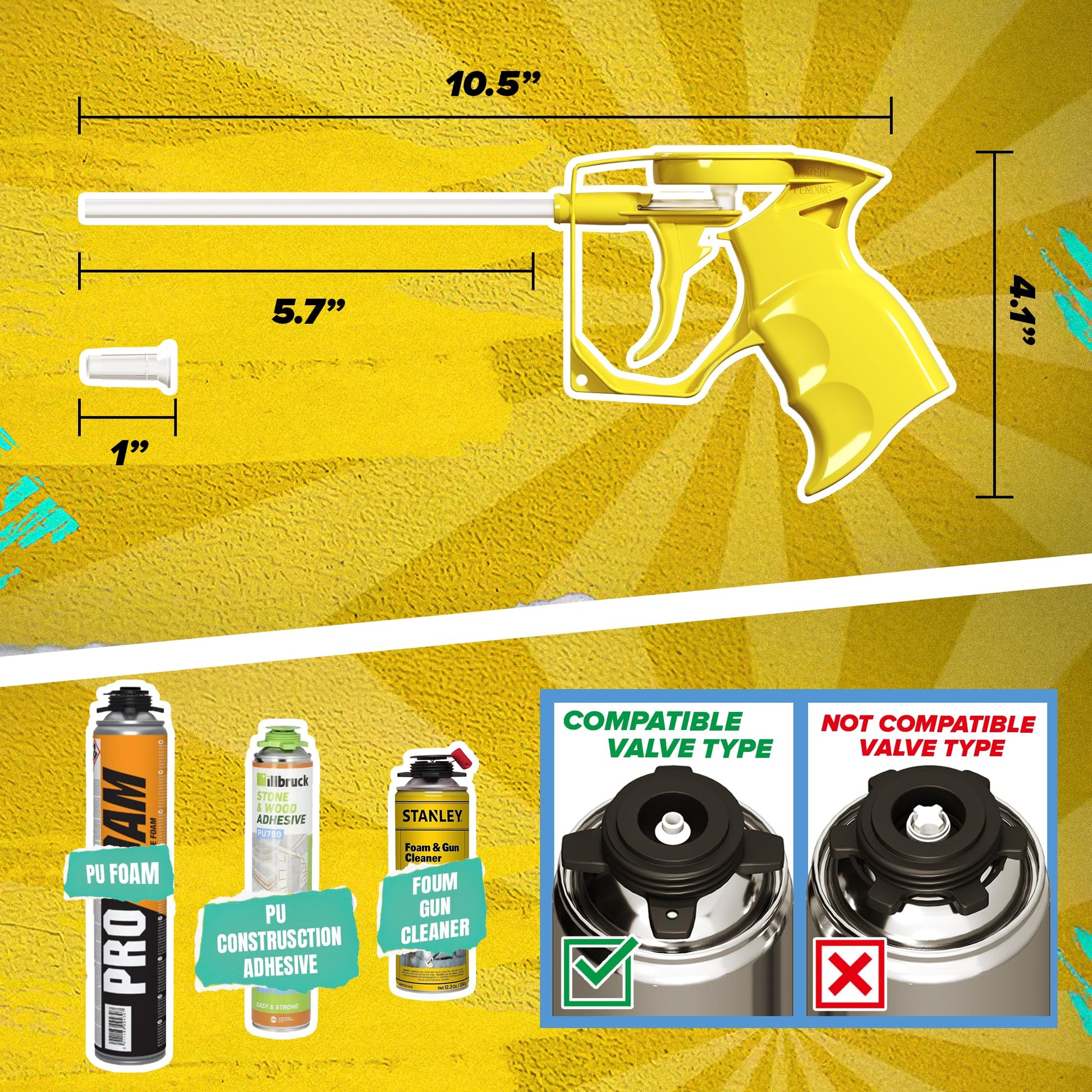 - Precision & Control with Expanding Foam Gun – Engineered for application of spray foam insulation with precision through the help of its trigger mehanism, this foam gun insulation tool ensures even coverage of insulation spray foam and wide spray foam applications. It acts as a complete insulation spray foam kit.