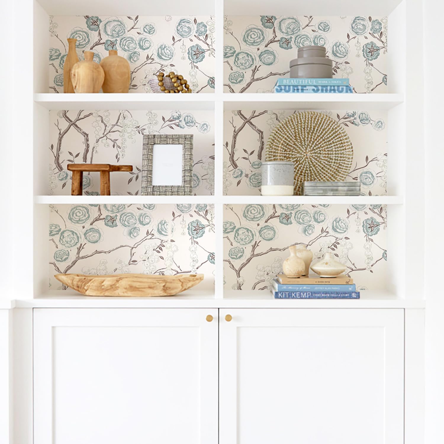 Orainege Blue Peony Floral Wallpaper Peel and Stick Wallpaper Floral Contact Paper Self Adhesive Removable Wall Paper for Bedroom Bathroom Decorative 17.7"x118.1"