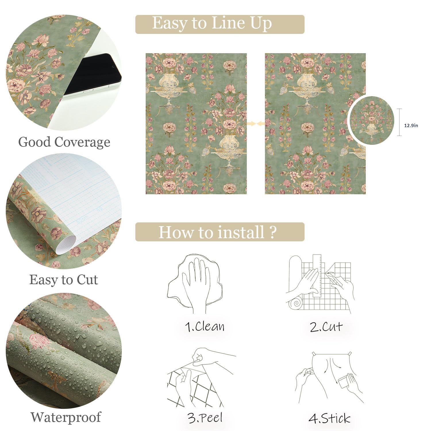 - 【UNIQUE DESIGN】This peel and stick wallpaper aims to create a romantic, elegant and cultural living space by combining elements such as vines and flowers with retro tones.