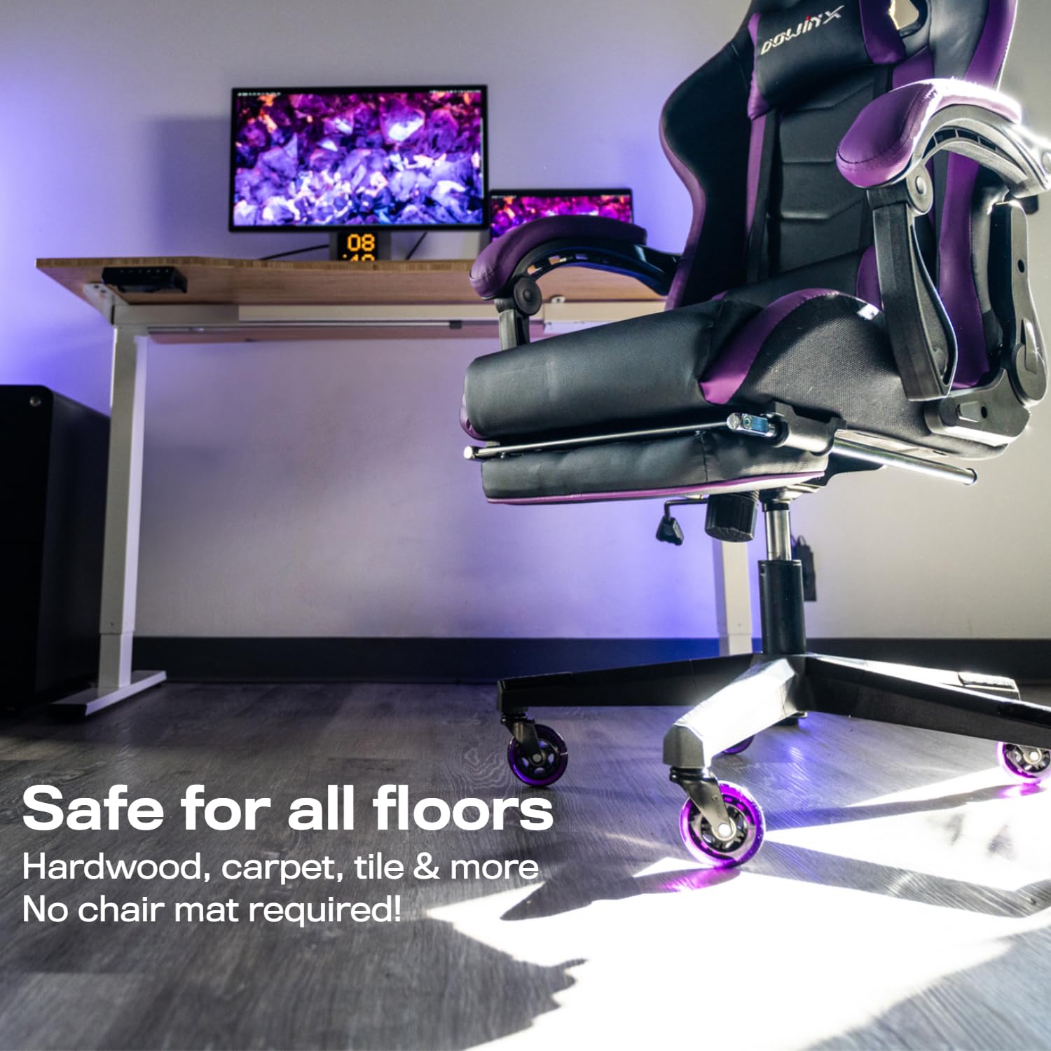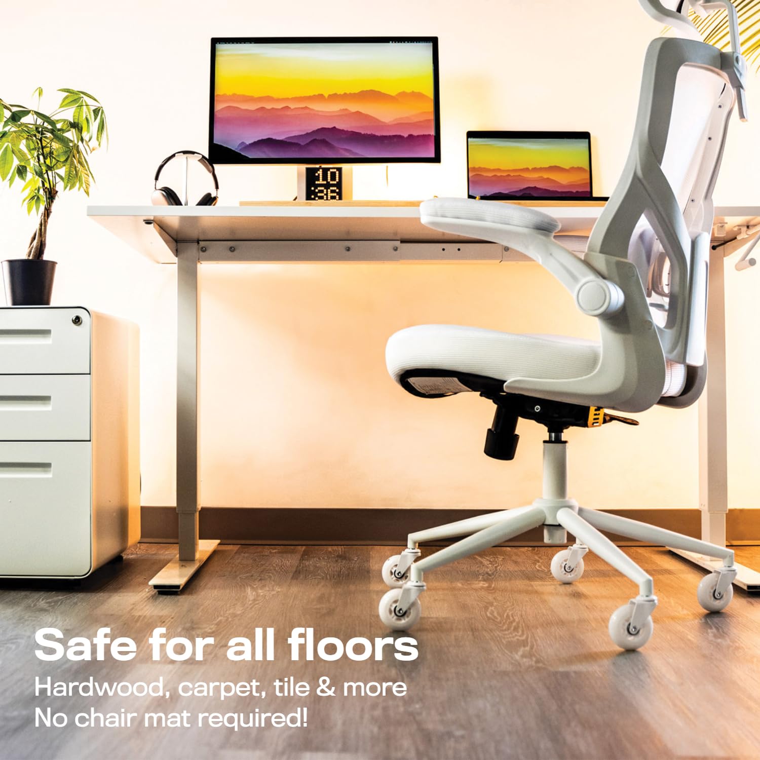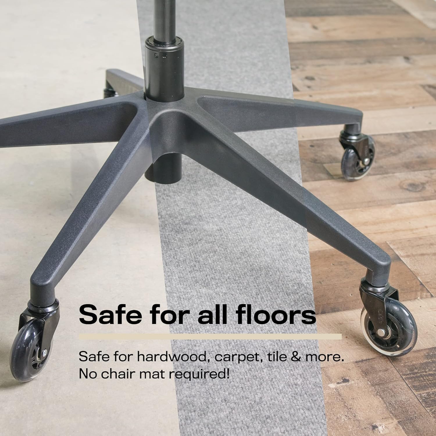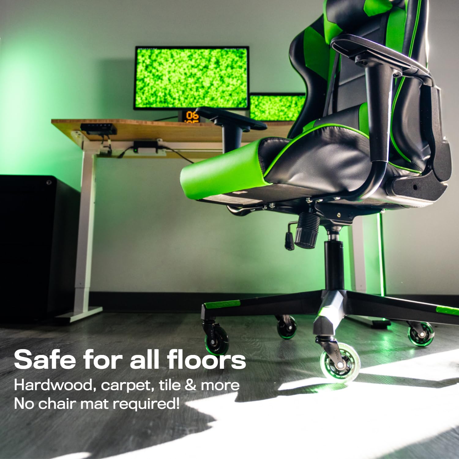 - ★ SAFE FOR ALL FLOORS - Many chair wheels use cheap, low quality materials that destroy your flooring. We don't. Encased with soft, polyurethane material our rollerblade style wheels are guaranteed not to scratch or leave marks on any surface (including hardwood, carpet, tile, laminate and more).