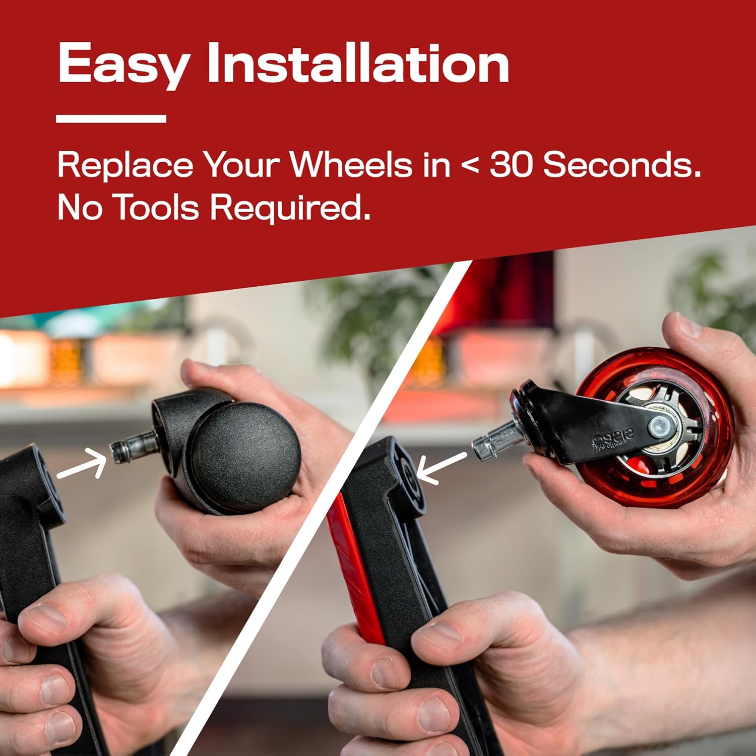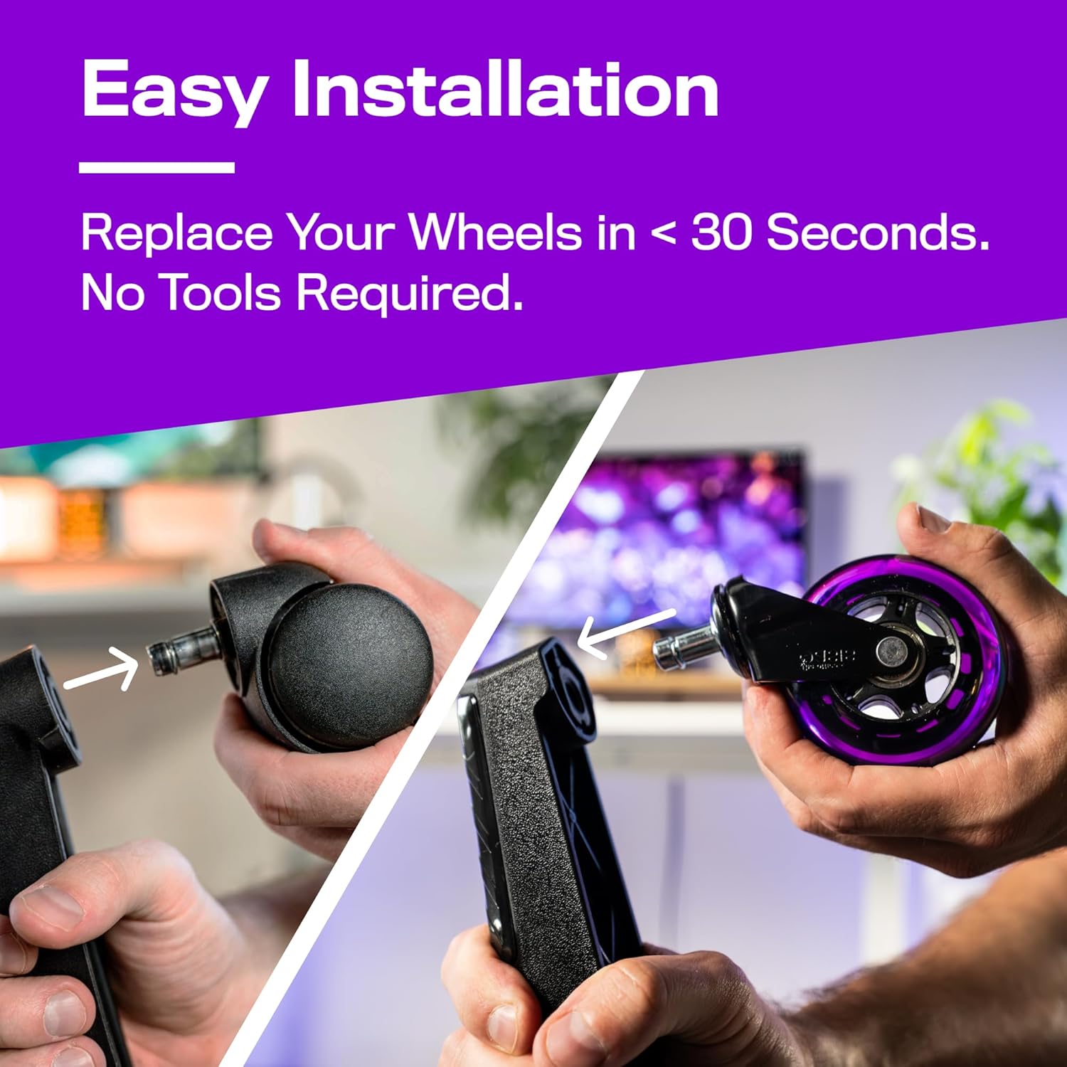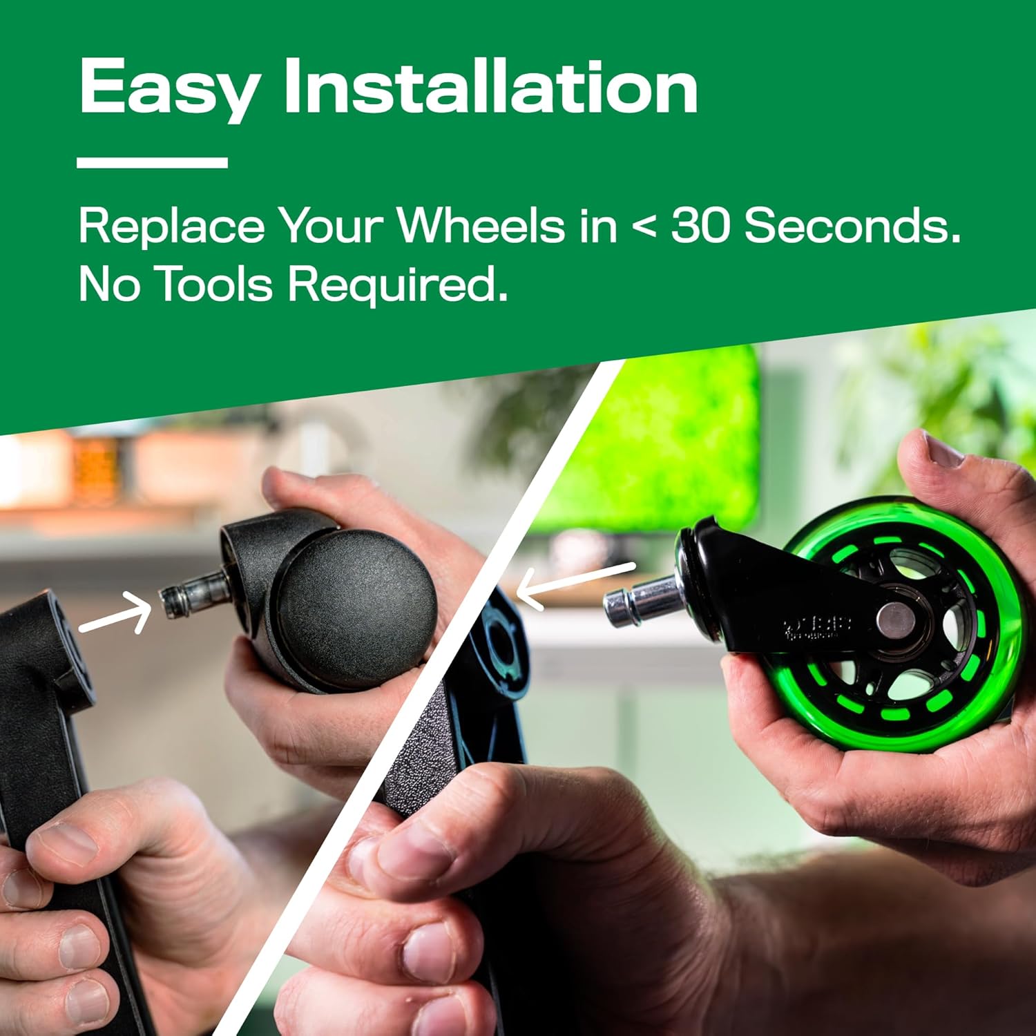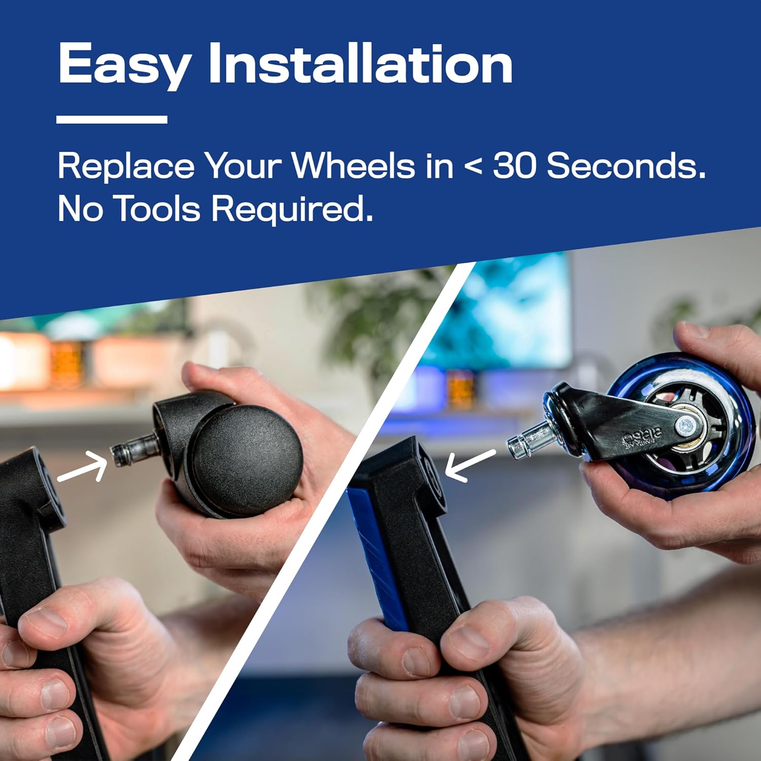 - ★ QUICK AND EASY INSTALLATION - No tools required! Easily remove and replace the wheels in your desk chair in less than 30 seconds. Simply pull out your old caster wheels and pop these in. Check out our quick replacement video for more details.