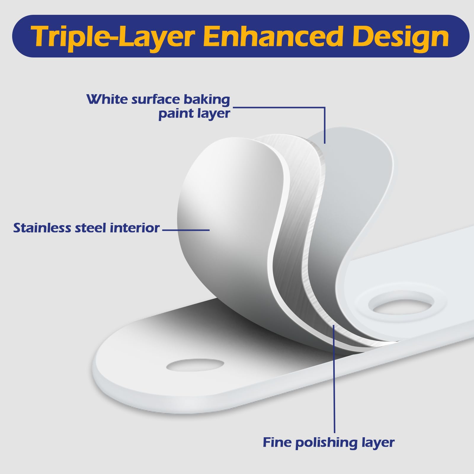 Oufiin 12Pcs White Stainless Steel Straight Braces, 3.78” Flat Brackets,Straight Bracket, Ideal for Wood, Bed Frame, Furniture & Shelves Mending,with 48Pcs White Stainless Steel Screws